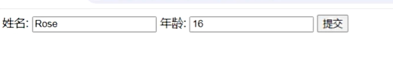 注意:表单项要想能够采集数据,必须得设置name属性,表示当前表单项的名字--><form action="请求地址" method="提交方式">姓名<input type="text" name="用户名"></input>年龄<input type="text" name="年龄"></input><input type="submit"(提交按钮) value="提交按钮名字"></input> </form>