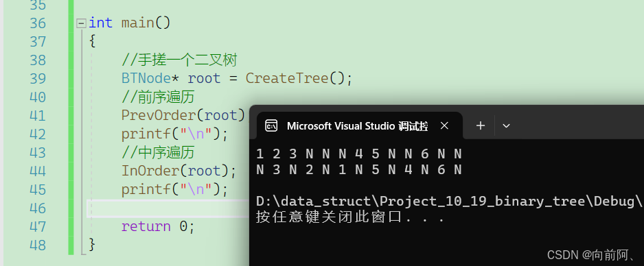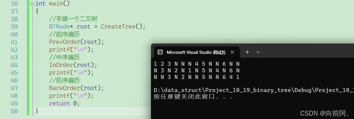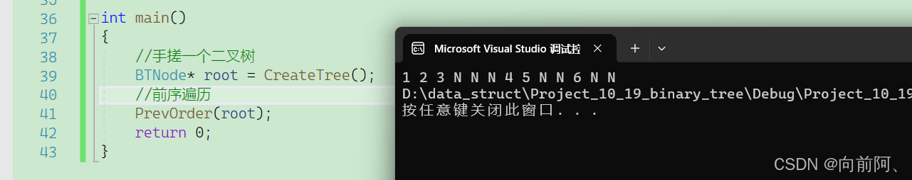 {//手搓一个二叉树BTNode* root = CreateTree();return 0;