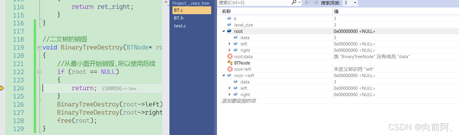 {//从最小面开始销毁,所以使用后续if (root == NULL){return;}BinaryTreeDestroy(root->left);BinaryTreeDestroy(root->right);free(root);
