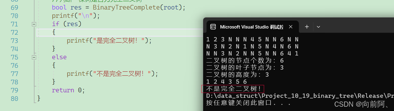 {if (root == NULL){return false;}Que q;QueueInit(&q);QueuePush(&q, root);while (!QueueEmpty(&q)){BTNode* front = QueueFront(&q);QueuePop(&q);if (front == NULL){break;}QueuePush(&q, front->left);QueuePush(&q, front->right);}while (!QueueEmpty(&q)){BTNode* front = QueueFront(&q);QueuePop(&q);if (front){QueueDestroy(&q);return false;}}QueueDestroy(&q);return true;