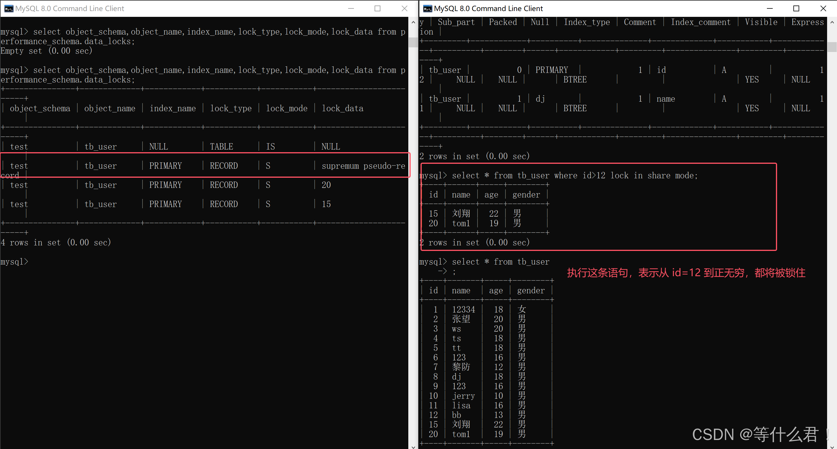 SELECT * FROM tb_user WHERE id > 12 LOCK IN SHARE MODE;