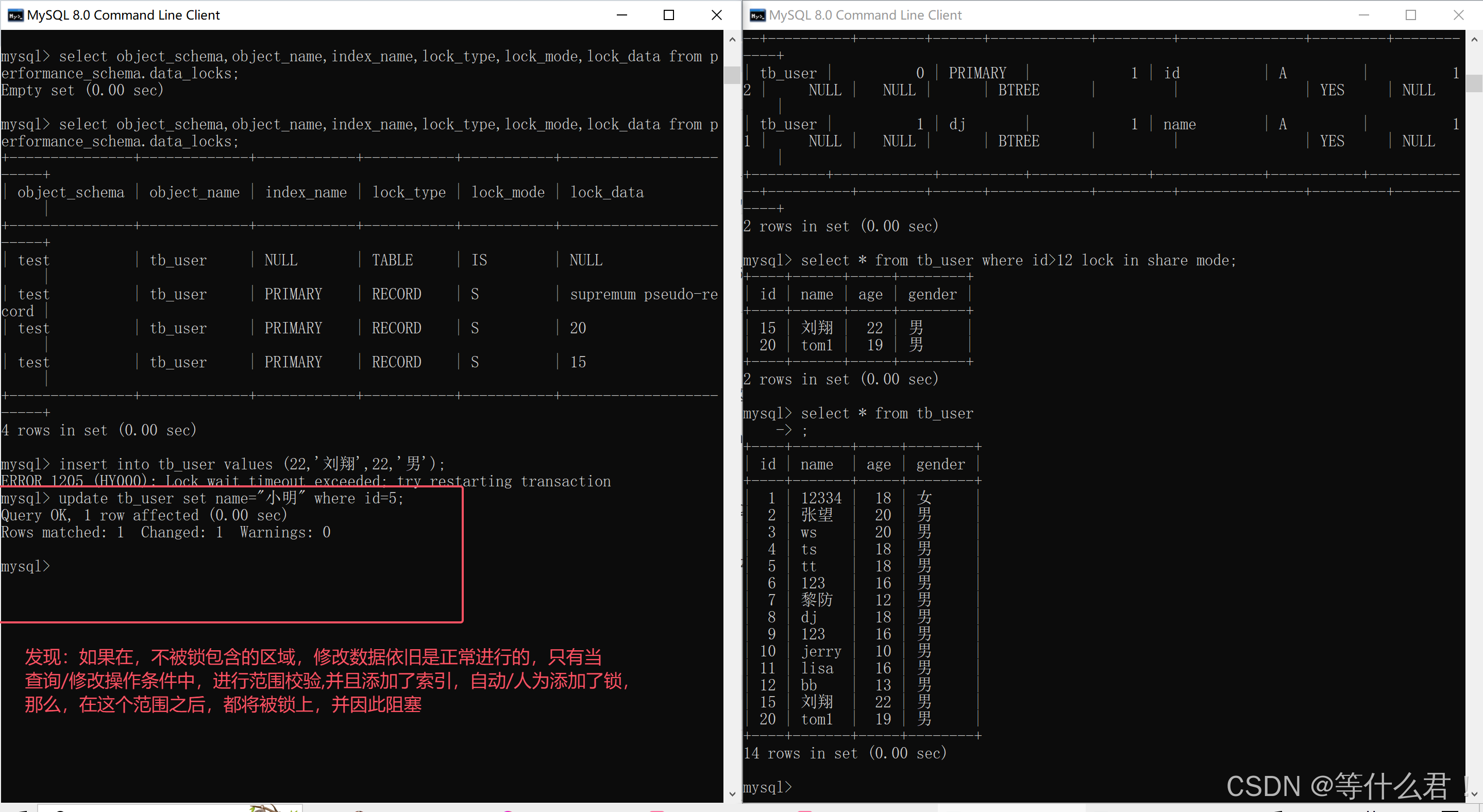 测试:在不被锁,锁包含的范围,中修改数据,看是否还会被锁