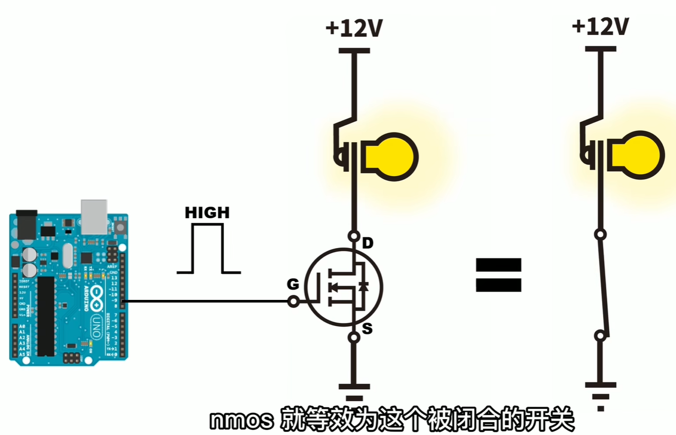 输出为高的时候,就等于被闭合的开关。