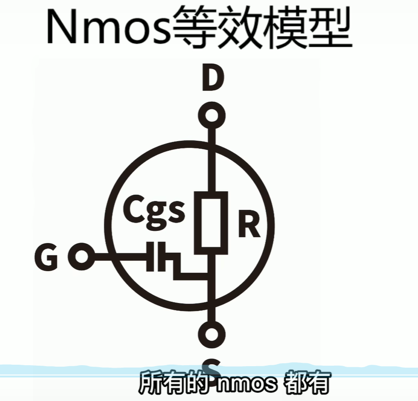 g和s之间的寄生电容,他会影响到NMOS的打开速度,因为加载到gate断的电压,首先要给这个电容先充电,这就导致了gs的电压并不能一下子到达给定的一个数值,他有一个爬升的过程,Rdson越小,Cgs就越大,注意平衡。
