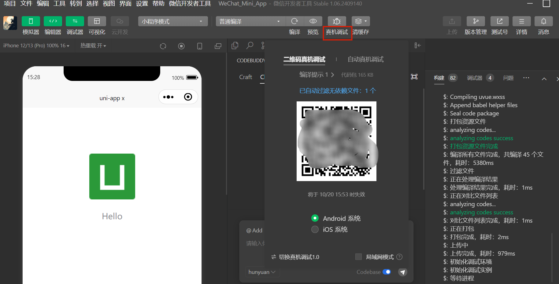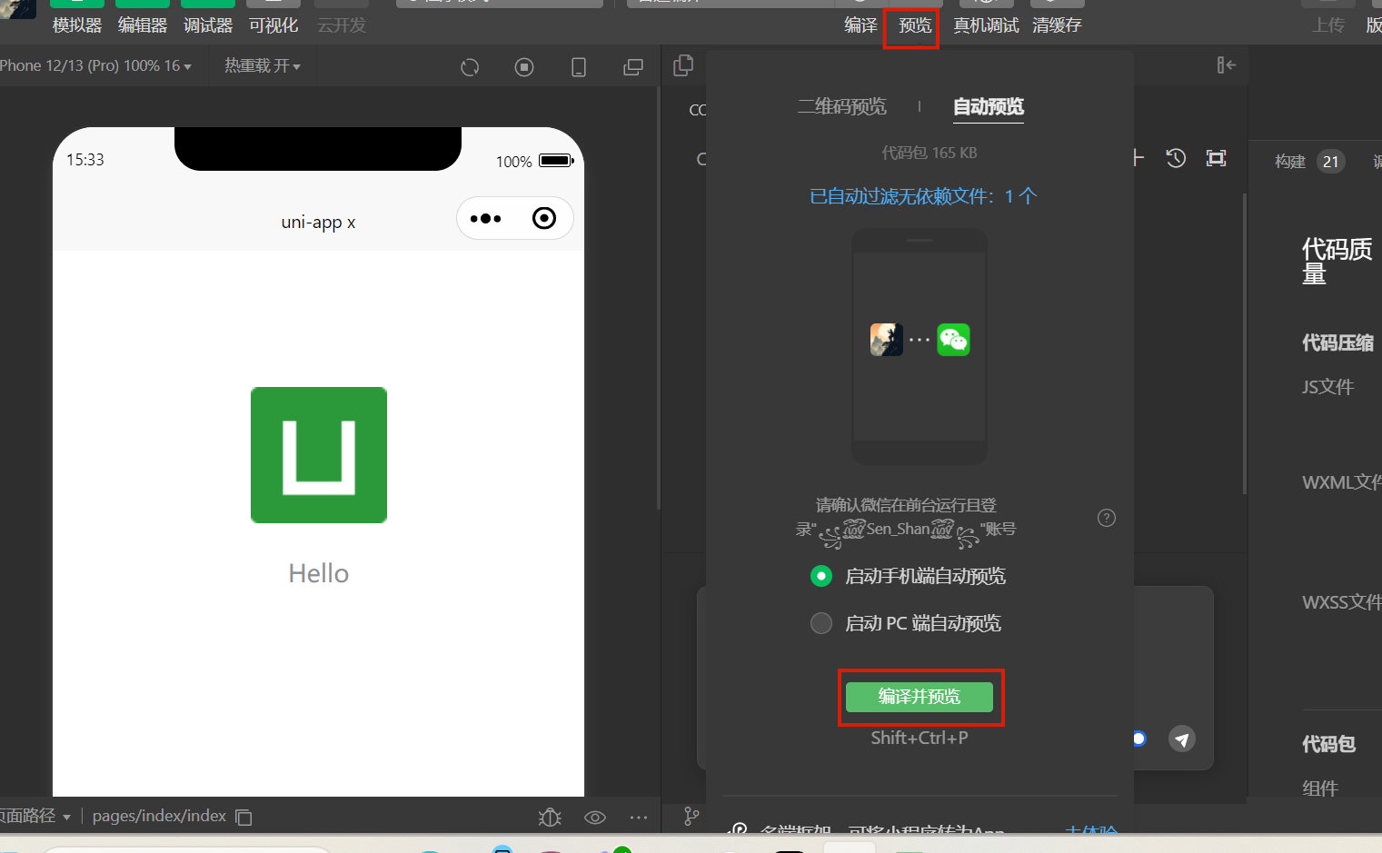 微信:开发者工具 → 预览 → 企业微信或微信扫码
