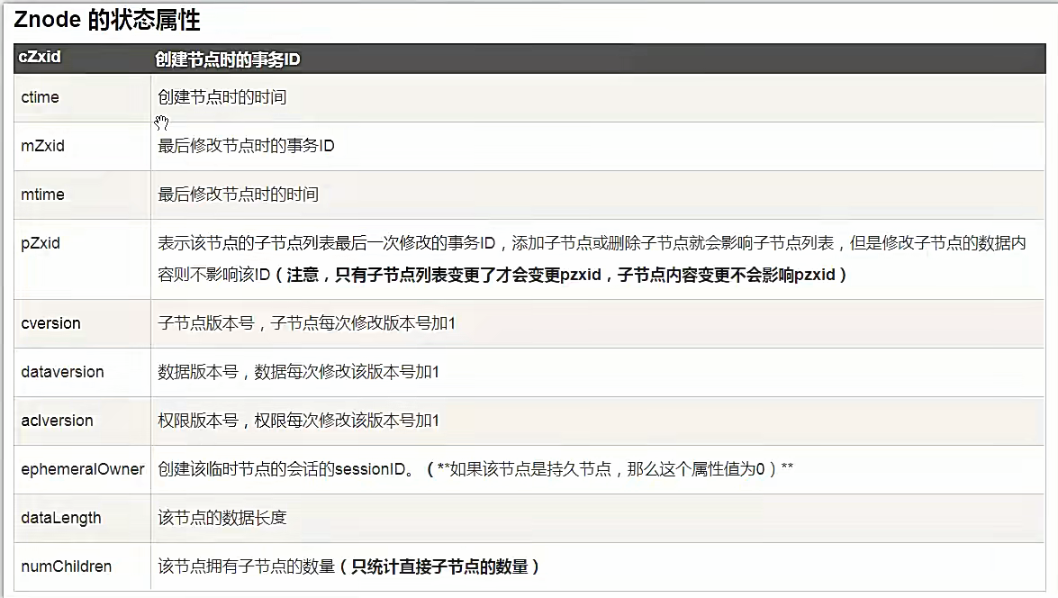 ⑧stat:查看节点的元数据(如版本号、创建时间、是否为临时节点等),语法:stat [-w] 节点路径