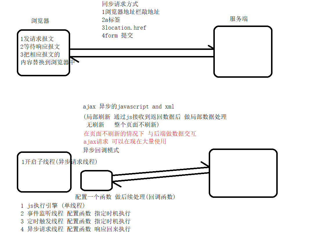 * ajax核心功能* 页面不跳转的前提下 发请求与后端做数据交互* 1.ajax通过子线程发送请求* 2.报文结构相同 后端处理模式不变* 3.后端会有一定的变化* 1.后端不再传页面标签 只传处理结果* 2.重定向功能无效* 3.请求转发(功能削弱 很少用到)*** 前端使用vue框后 使用MVVM模式