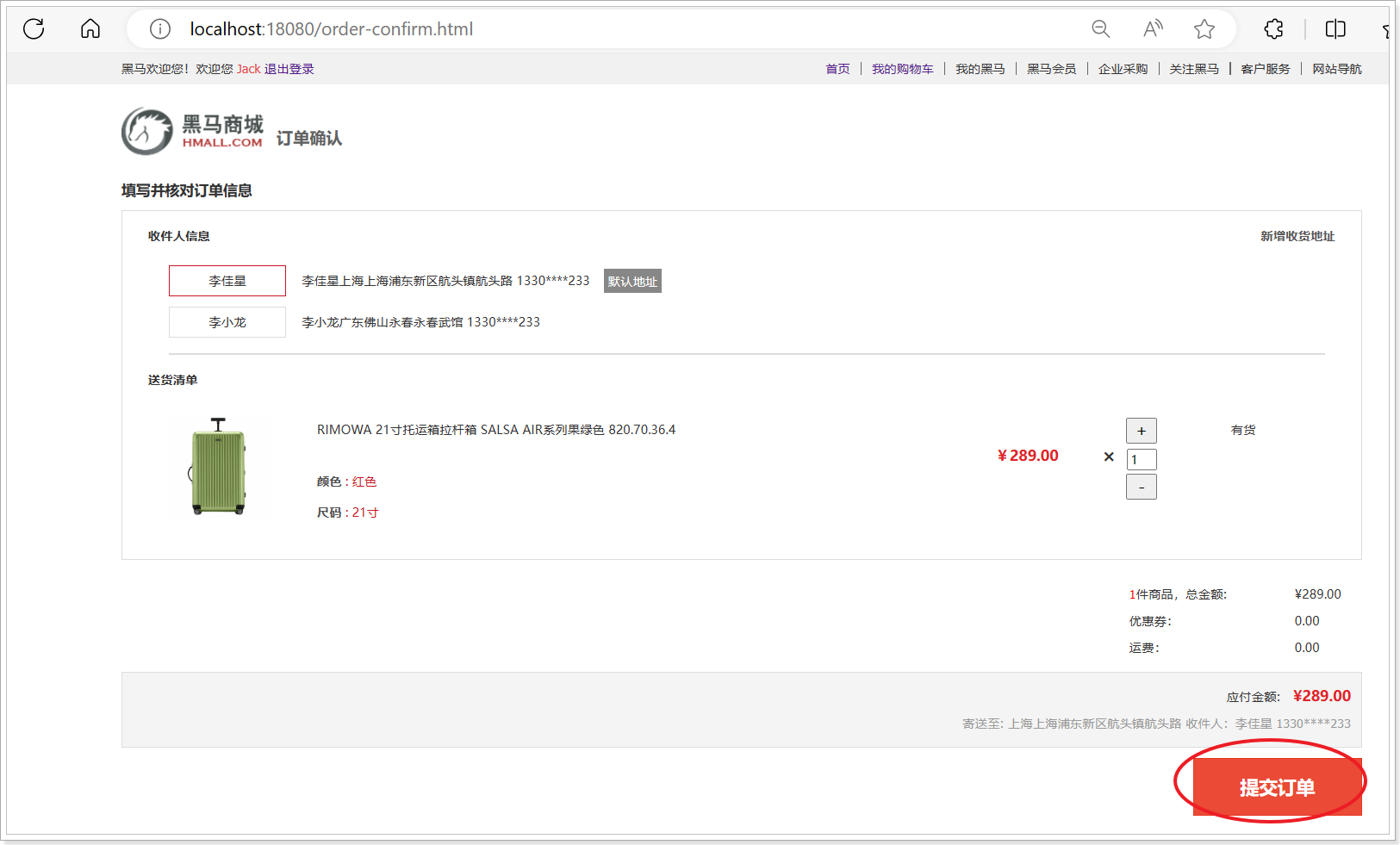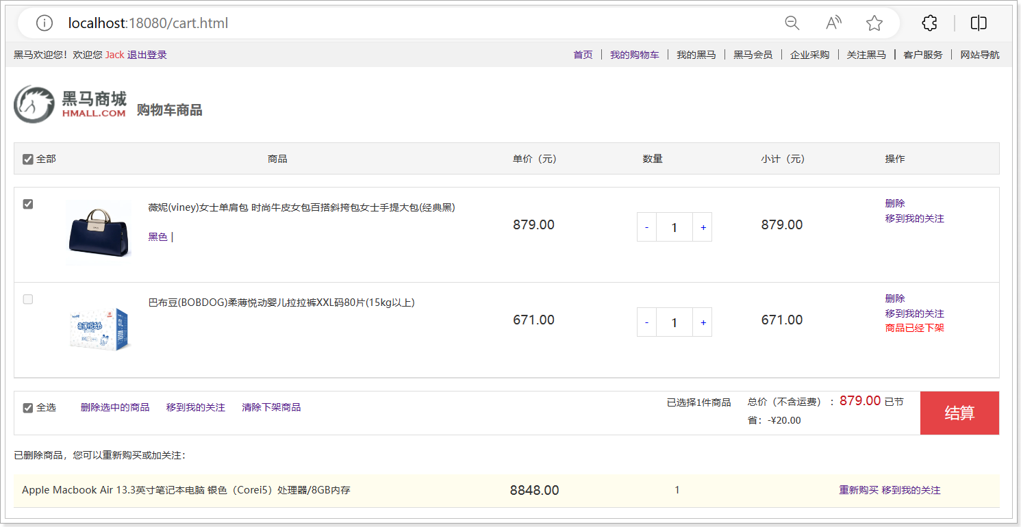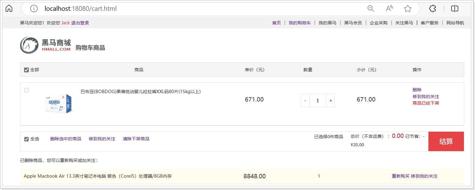 无需要重启;再次测试 加入购物车 可以将商品加入到购物车中,并在购物车列表展示如下: