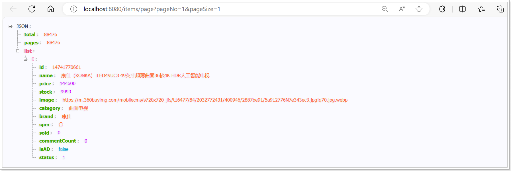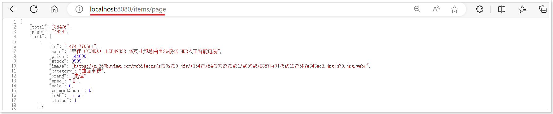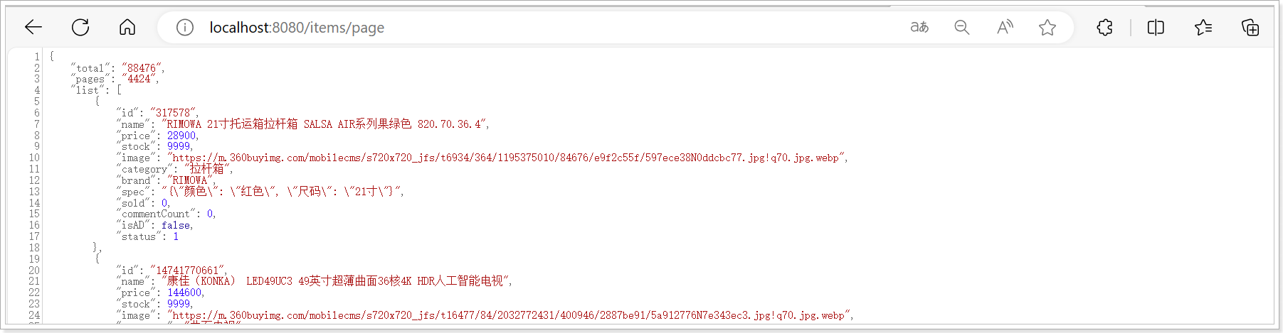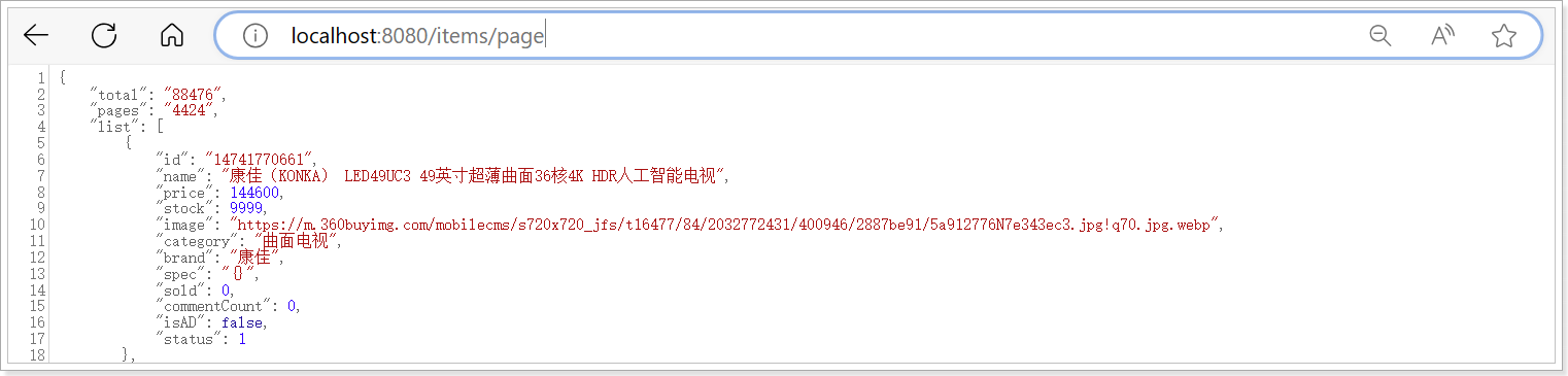 无需重启网关,稍等几秒钟后,再次访问刚才的地址:localhost:8080/items/page