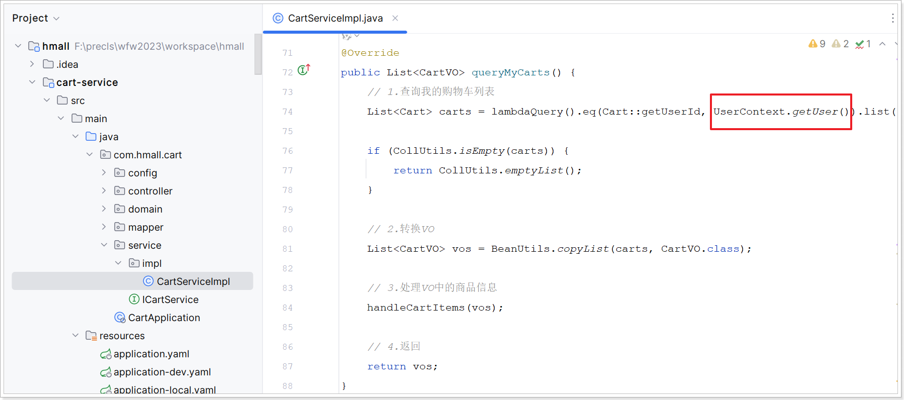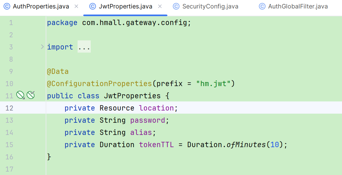 中新建一个属性读取类(com.hmall.cart.config.CartProperties