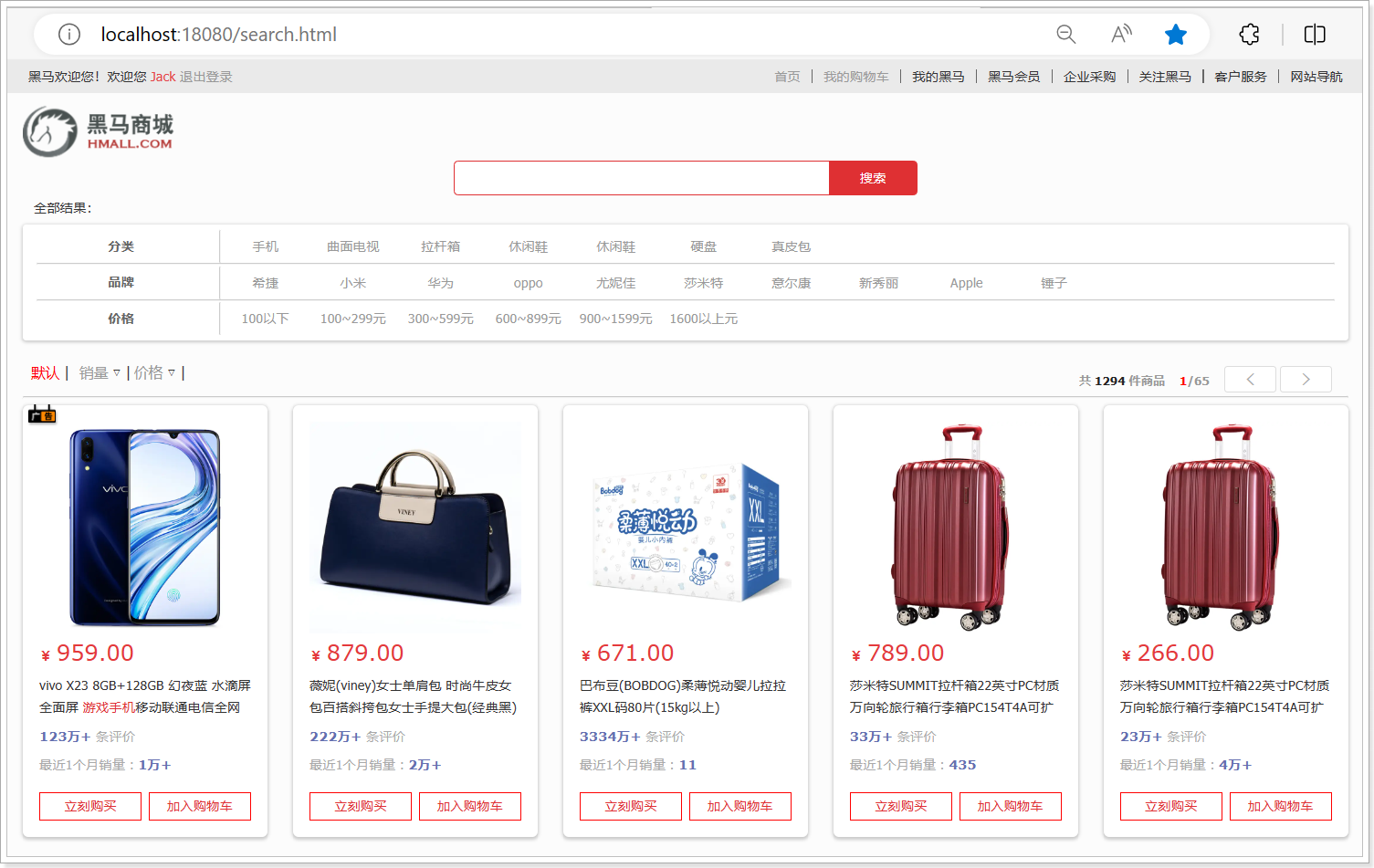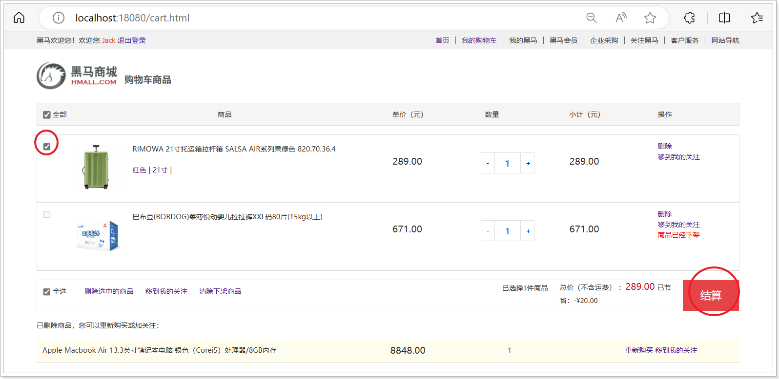点击 加入购物车