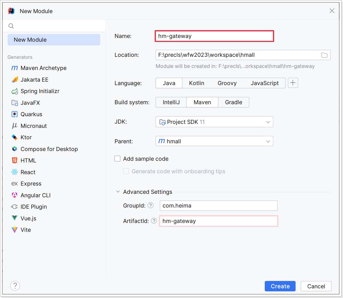首先,我们要在hmall下创建一个新的module,命名为hm-gateway