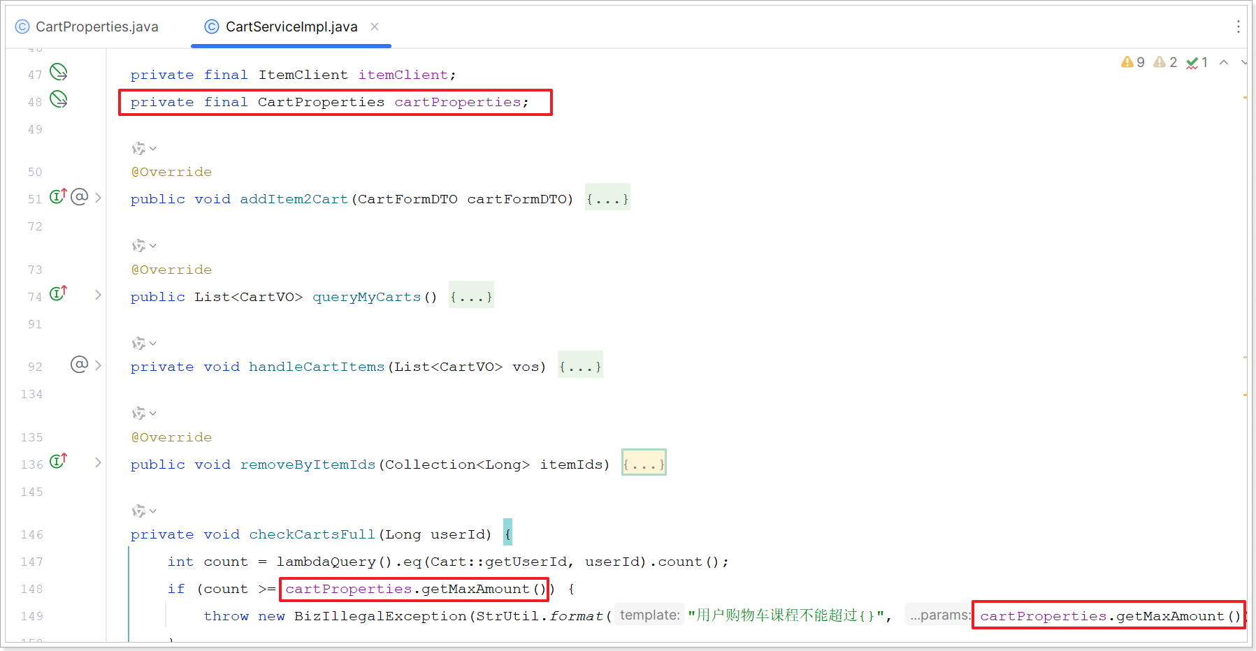 public class CartProperties {private Integer maxAmount;