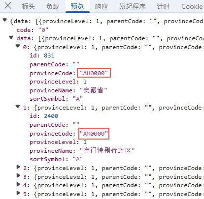 - 2.通过得到的所有省份的 provinceCode遍历每个省级行政区编码,依次调用接口,这样就得到了全部地级行政区编码;