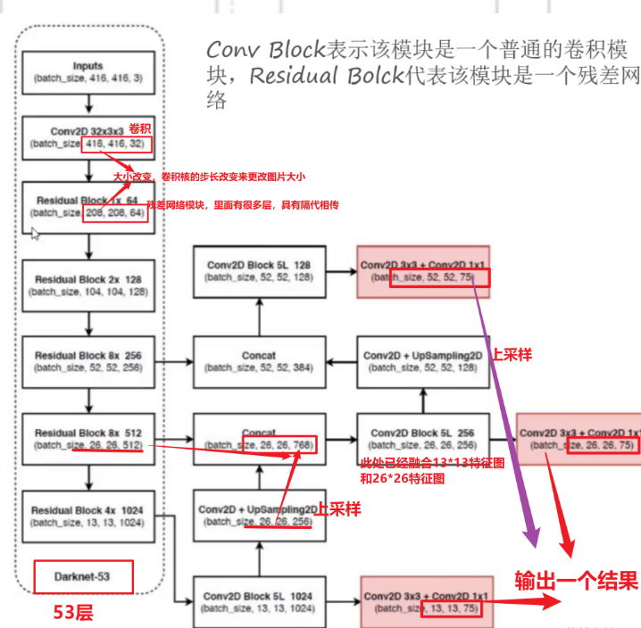 Darknet-53包含 53个卷积层,大量使用1×1/3×3残差块组合