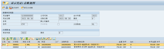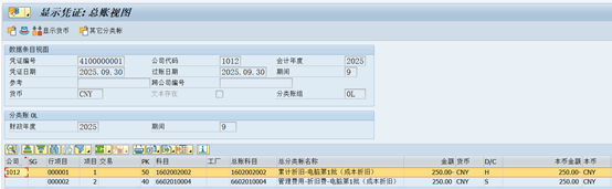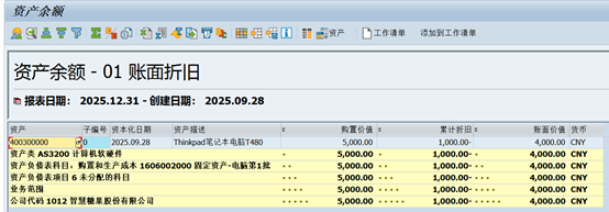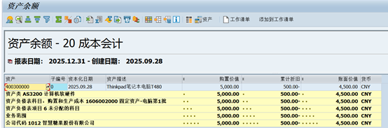 【AS03】查看是否过账。可以看到账面净值变为4250。