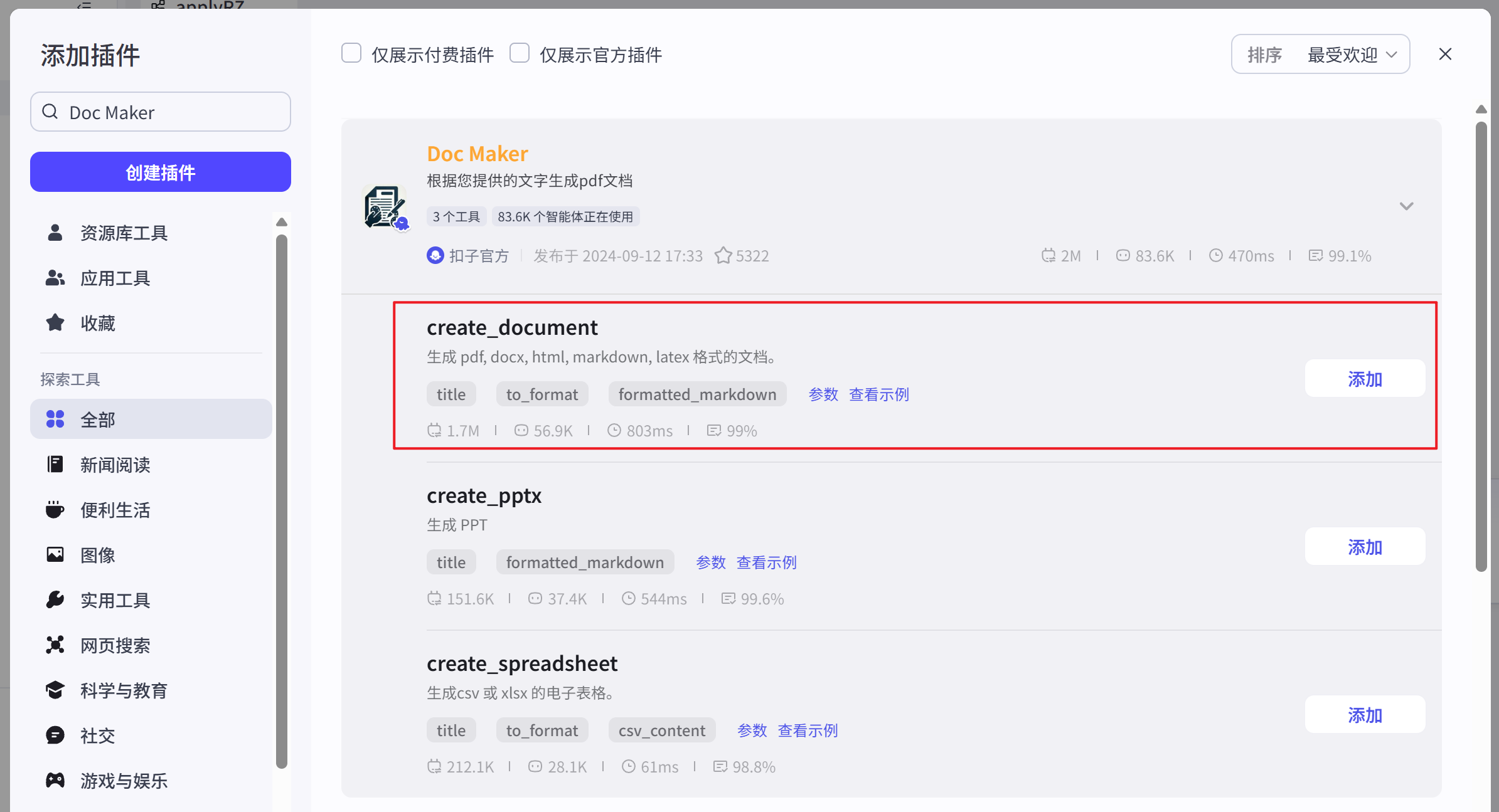 选择插件:Doc Maker — create_document :