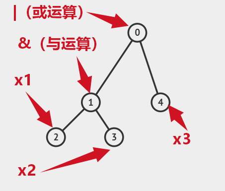 int dfs1(int x){if(x<=n) return t[x]=a[x];//如果当前序号是操作数的话,返回操作数原本的值if(f[x].c=='&'){//与运算返回值return t[x]=dfs1(f[x].child_l)&dfs1(f[x].child_r);}if(f[x].c=='|'){//或运算返回值return t[x]=dfs1(f[x].child_l)|dfs1(f[x].child_r);}if(f[x].c=='!'){//取反运算返回值return t[x]=(!dfs1(f[x].child_l));}