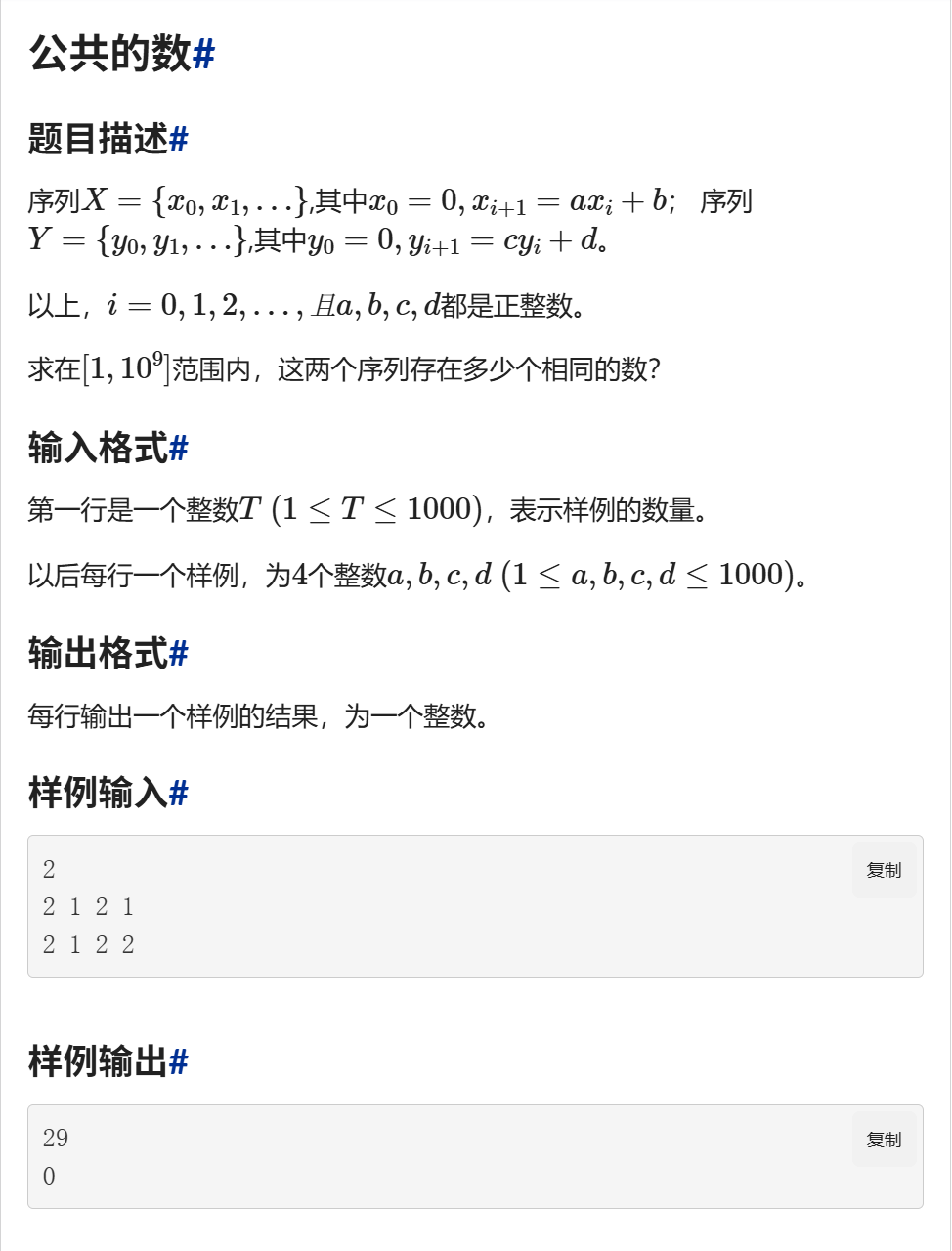 ,这是因为题目要求公共的数在[1,109]之间,这里N我提前设置好了为109,什么时候我们可以提前终止循环,当cy>N