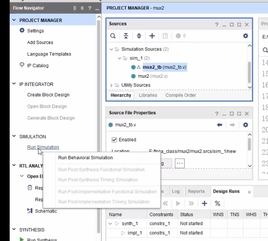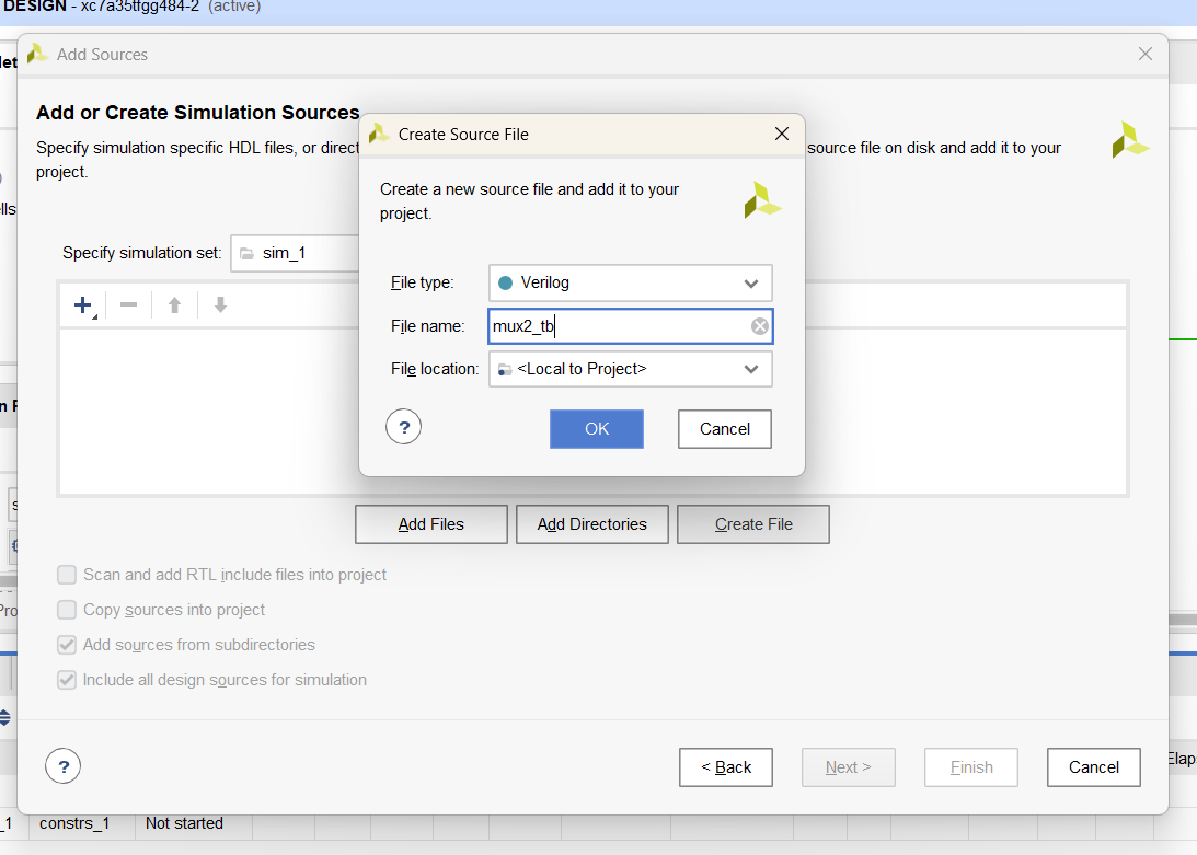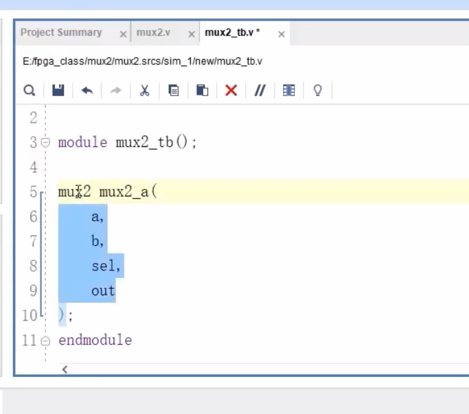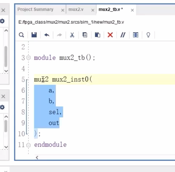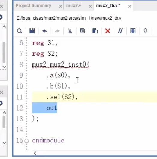 点击create file,给文件命名为mux2_tb,tb是test bench,加这个后缀以便告诉代码编写者