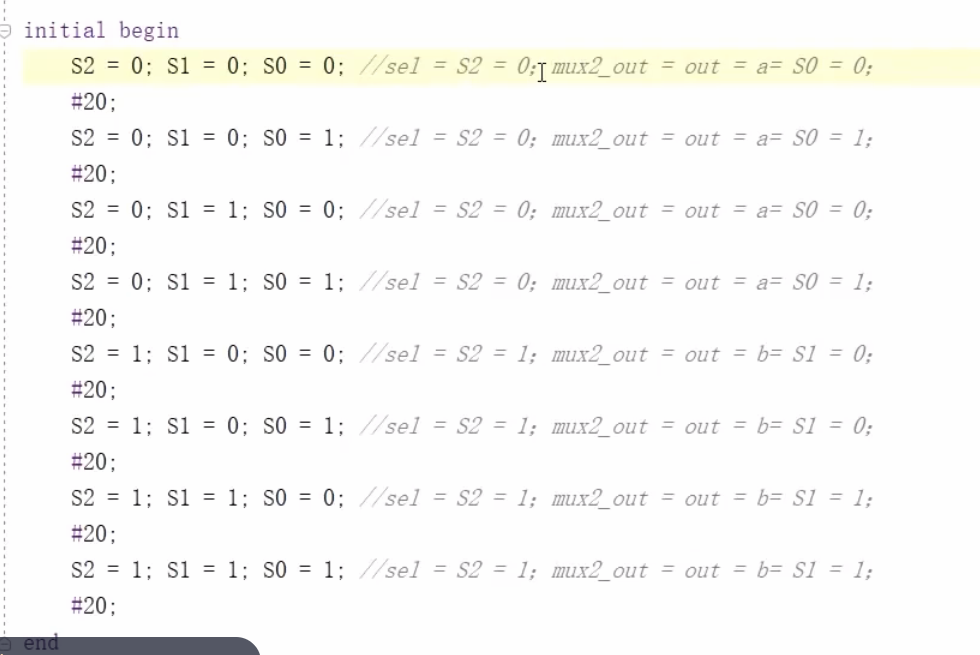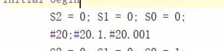 - #20;代表在仿真时间线上向后推行20ns,ns取决于刚开头的定义单位,只能用于仿真测试