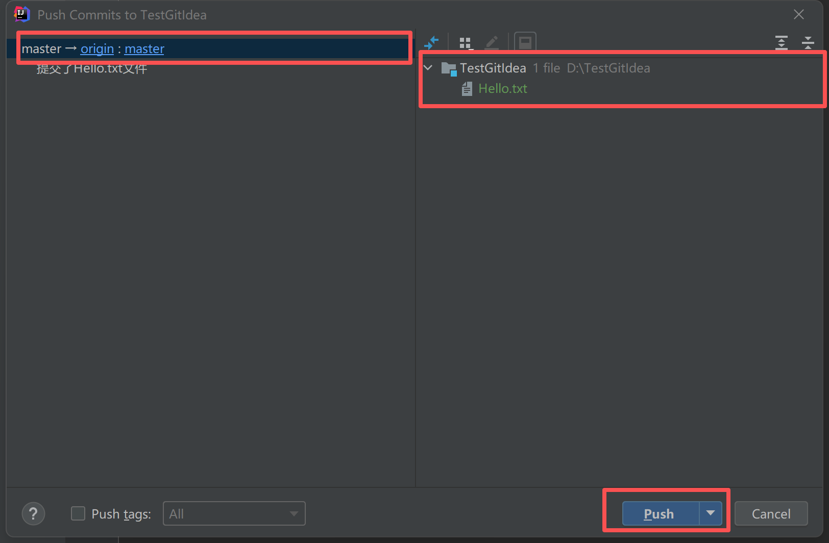 我们接着push它到远程仓库中:
