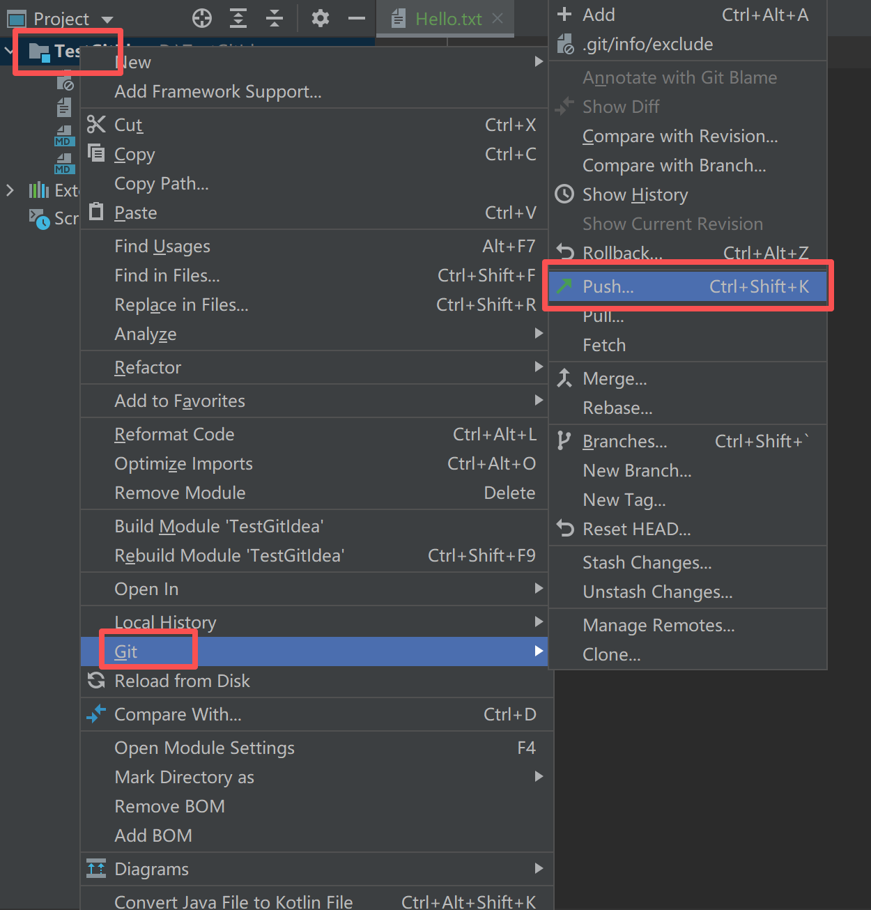 还是一样的,右键项目找到Git,然后push: