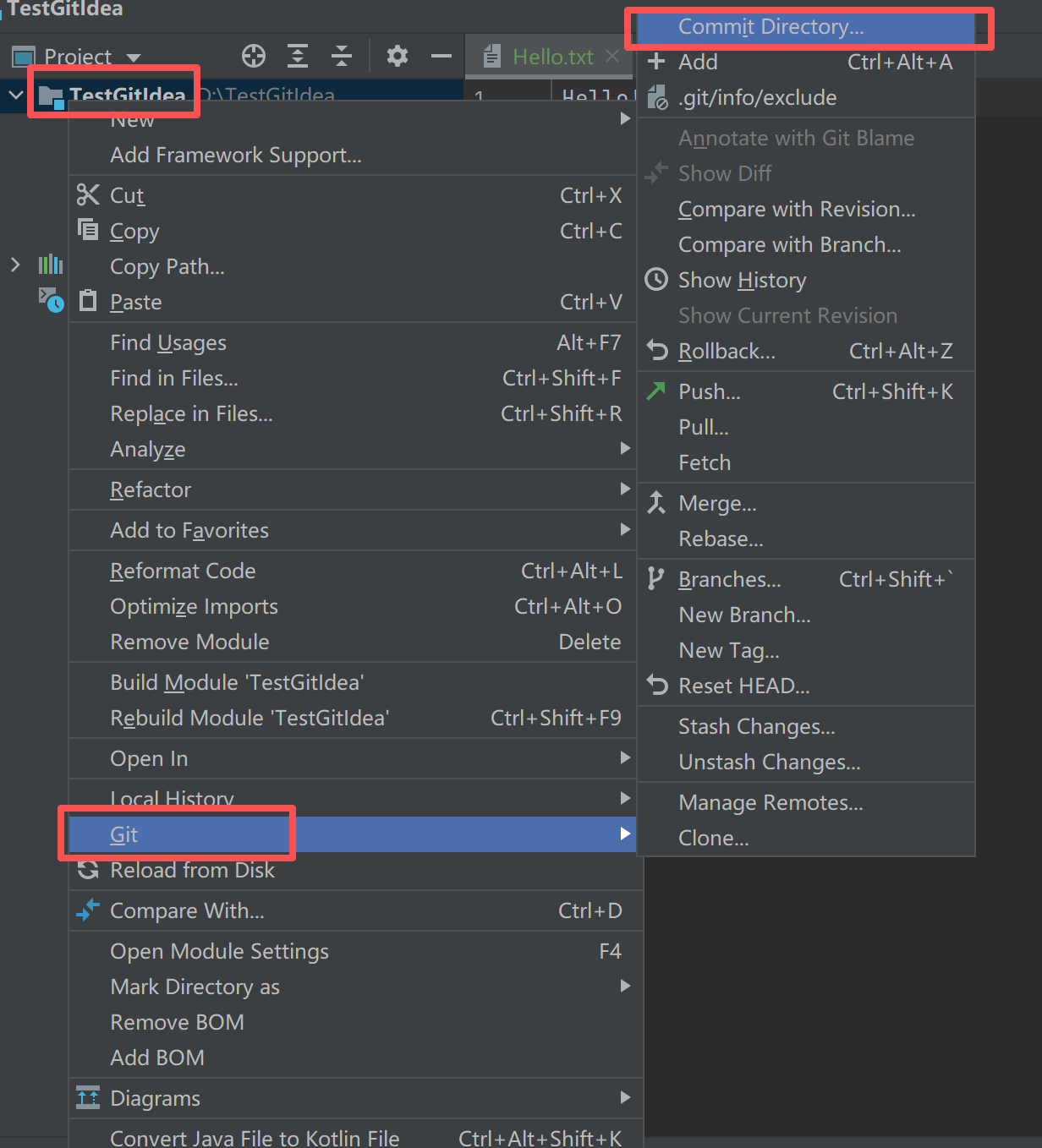 右键项目,找到Git,然后commit: