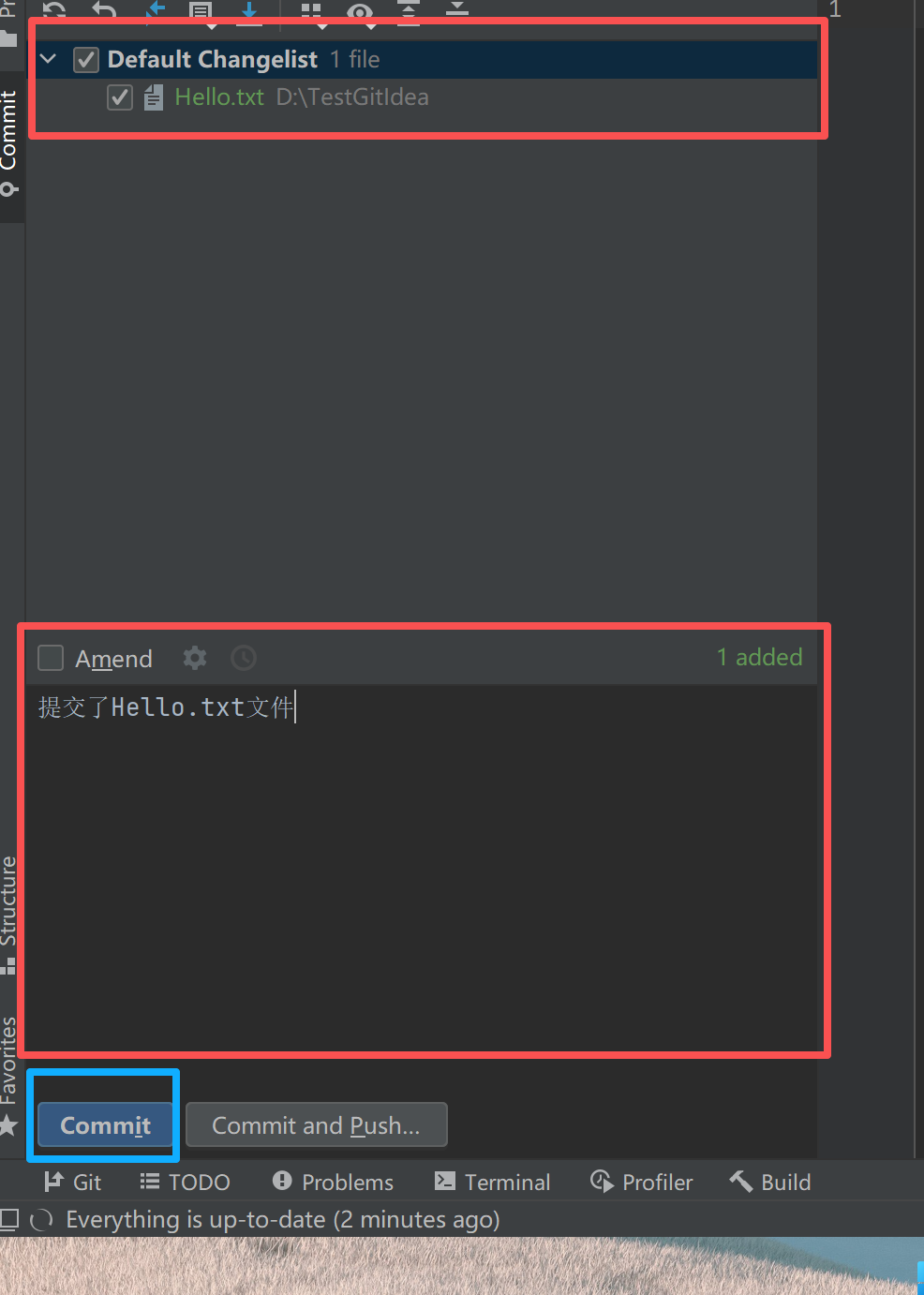 勾选需要commit的文件,填写好描述之后,点击commit
