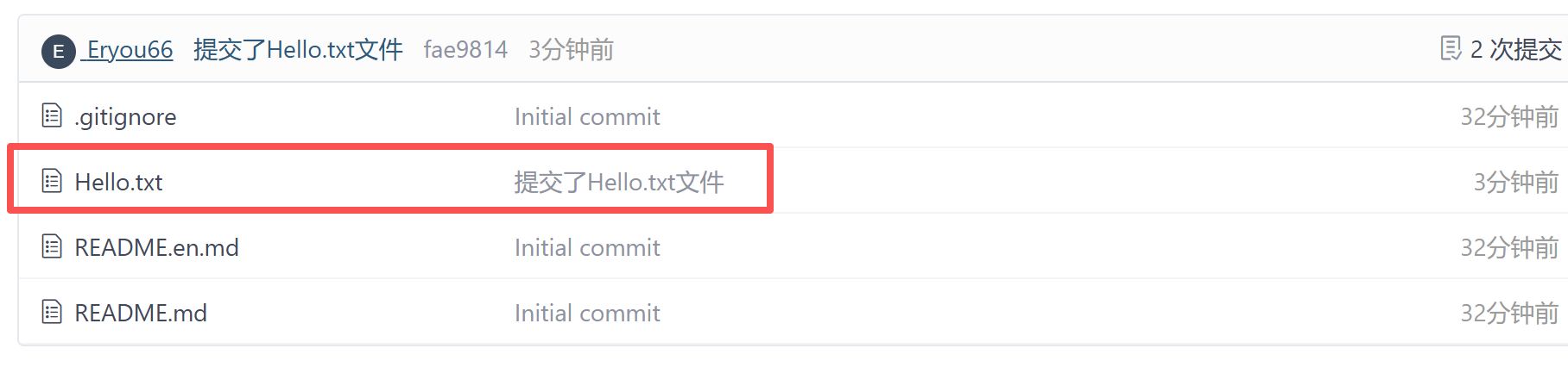现在的Hello.txt文件在暂存区,我们继续commit它: