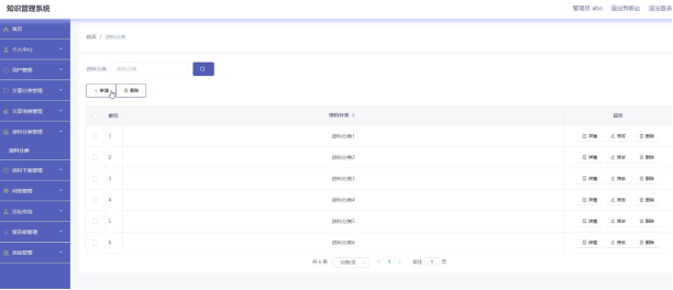 资料分类:管理员登录后可以对资料分类信息新增,修改,删除以及查询操作。