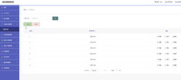 文章分类:管理员登录可以在文章分类新增,修改,删除,查询资料分类。