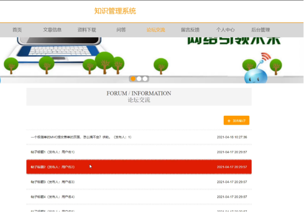论坛交流:用户可以在论坛交流里面发布信息和查看信息,发布信息需要提前登录才可以操作。