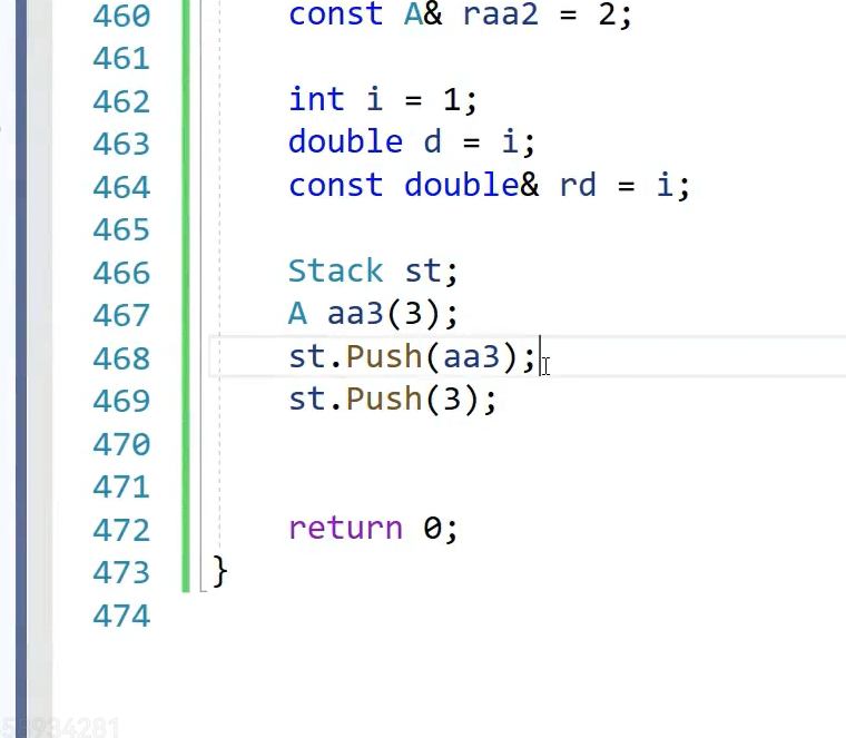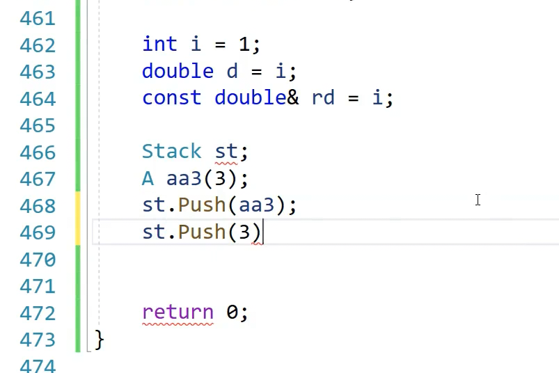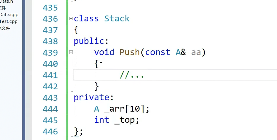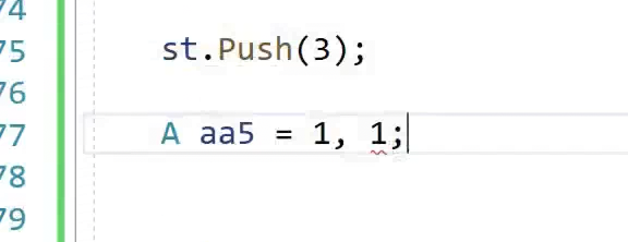 这里定义了一个栈,栈里存的A类型,在这实现一个栈,栈内要插入数据,插入aa类型