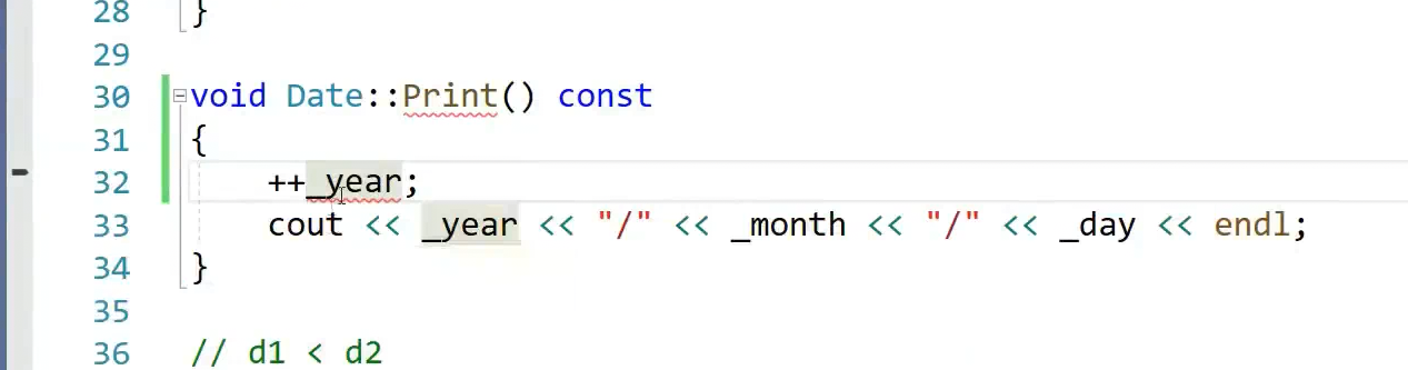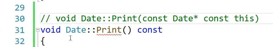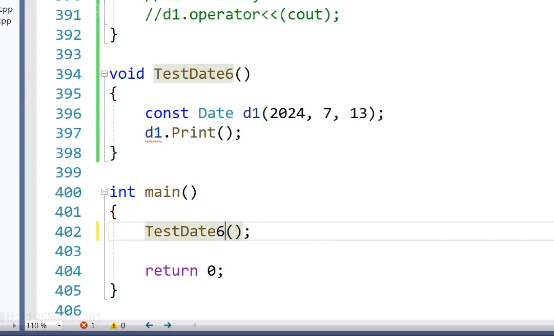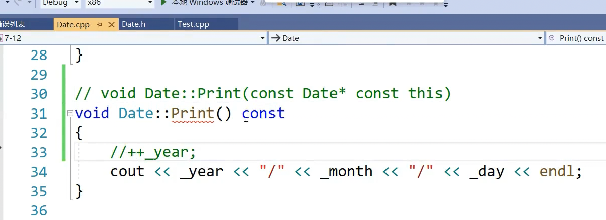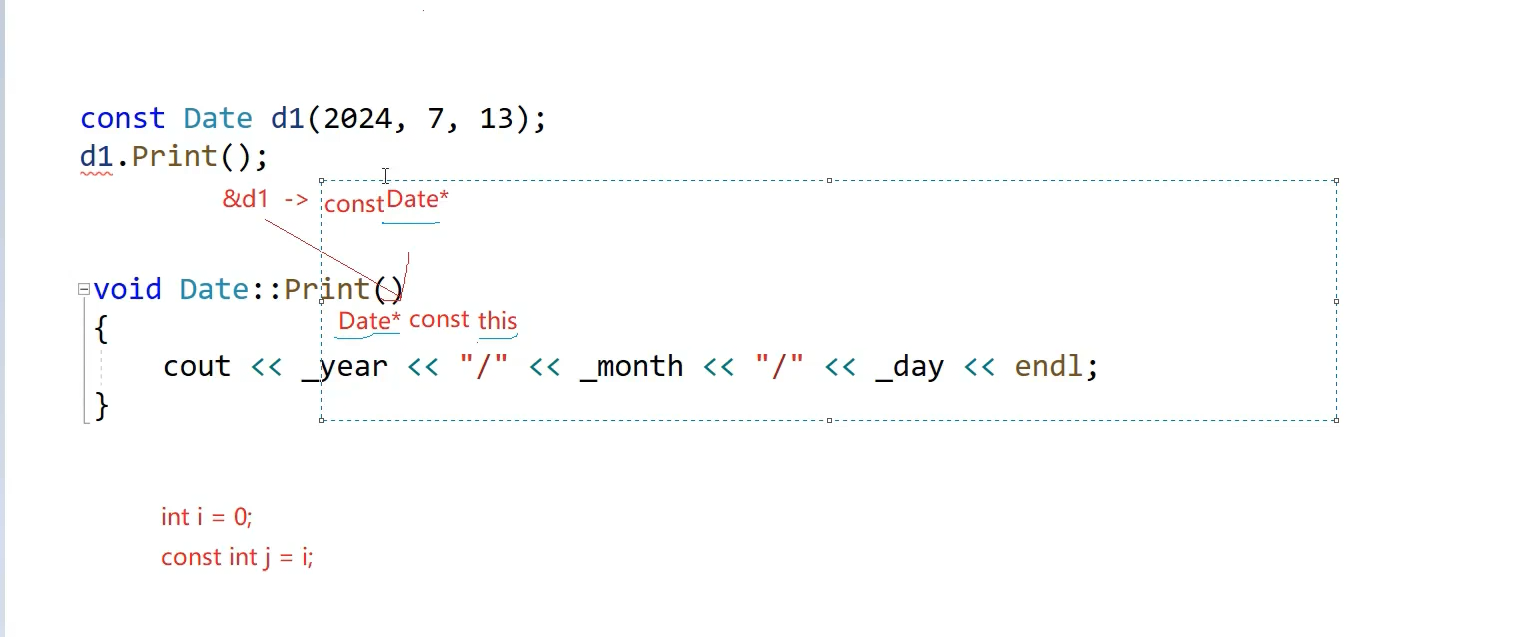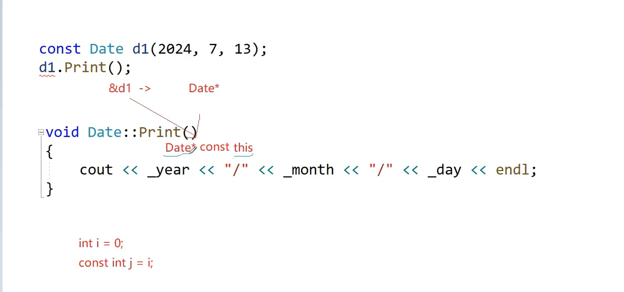 我们的对象可能有const对象,const对象调用函数的时候是有一定限制的,比如说用const调用Print