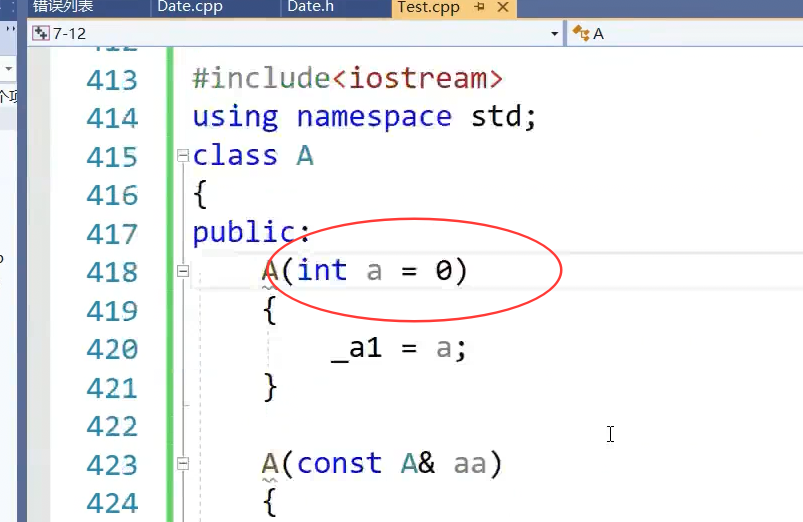 效果一样的,报错因为没提供默认构造因为这有自定义类型,默认生成的要调用A的构造