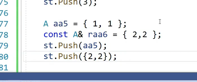 这我构造一个有名对象,他变成有名对象的引用,下面的会自动生成一个临时对象,用A构造一个临时对象,这多便捷,临时对象具有常兴,所以加 const