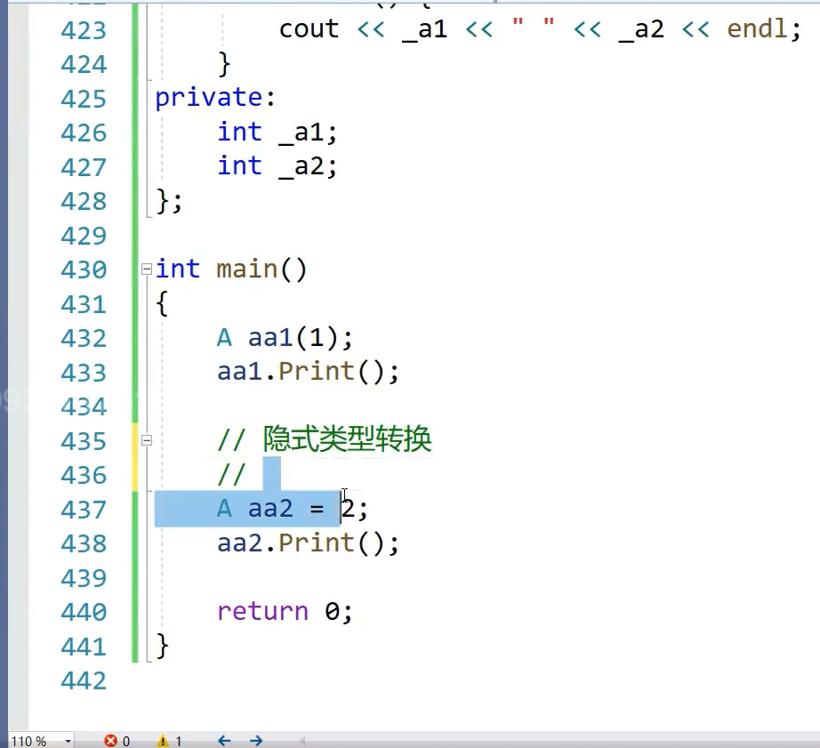 这样也可以加上关键字explicit可以防止转换发生,多参数也一样,加上就不支持了。