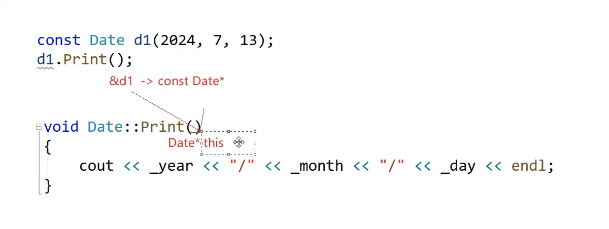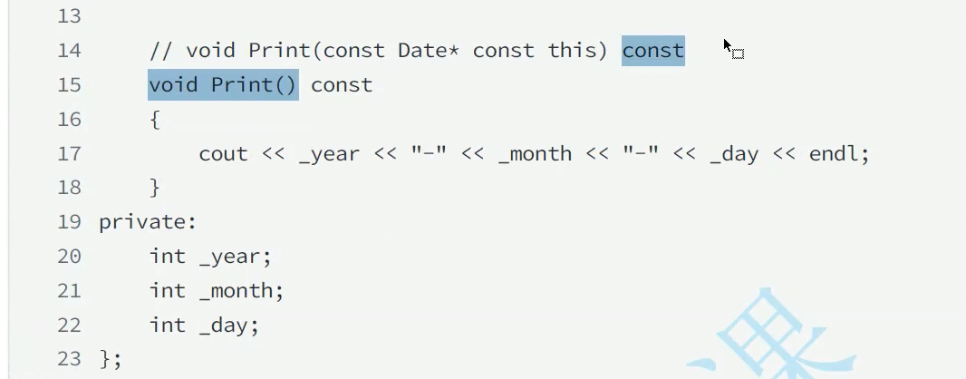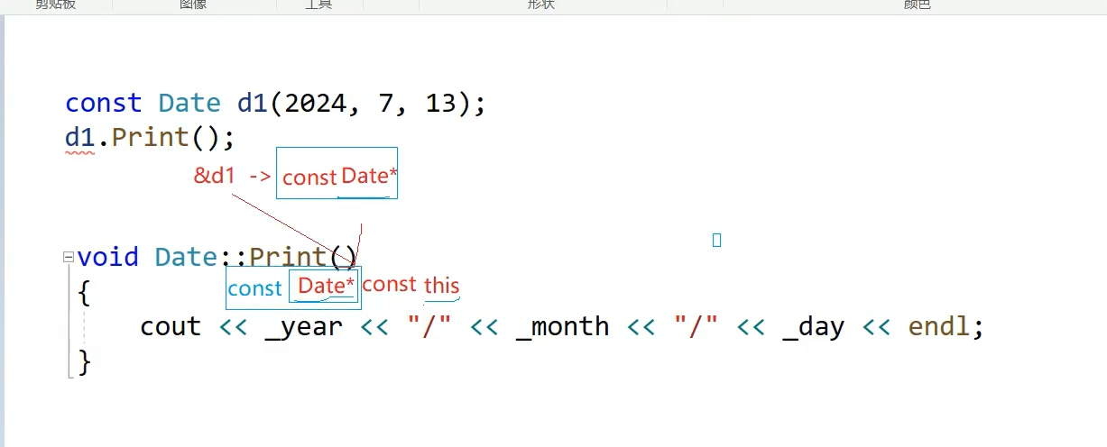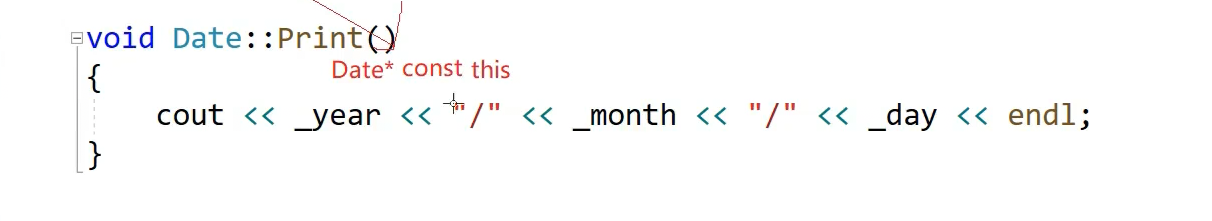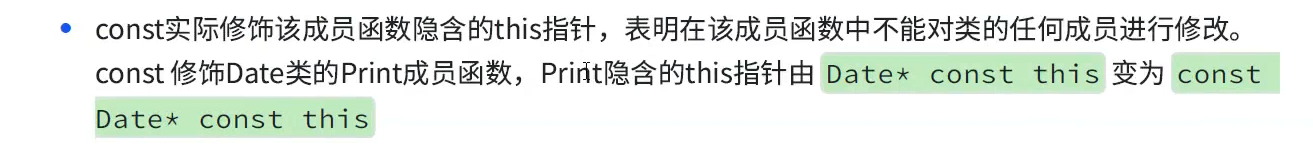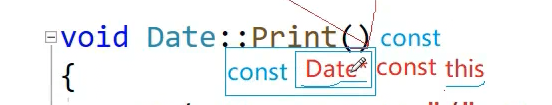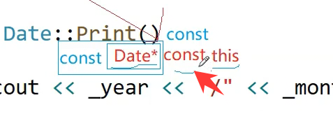 如果成员函数后面没加const就是Date*加了const就是 const Date*