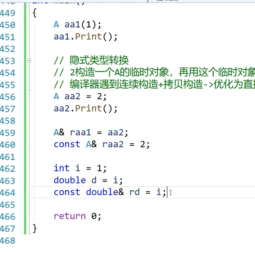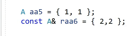 raa1能直接引用aa2,但不能直接引用2,并不是因为类型不同。因为中产生类型转换有临时变量具有常性,加const就可以 这时候怎么没有合二为一,这中间生成临时对象,引用临时对象,没有拷贝这有什么意义: