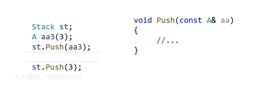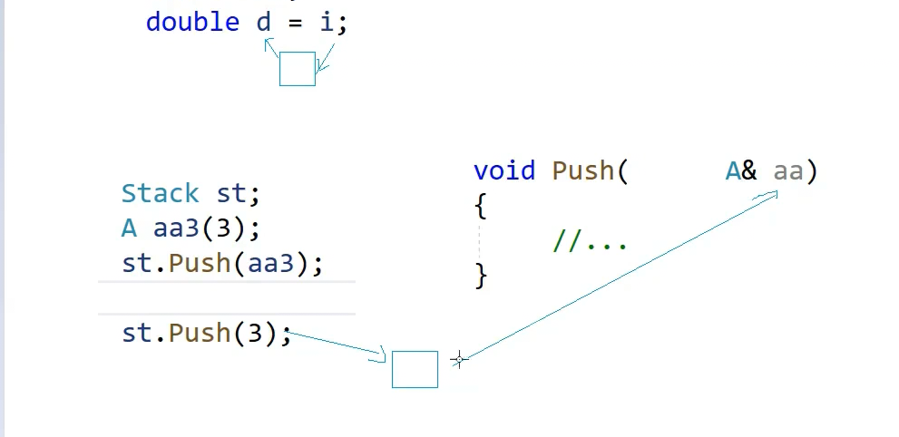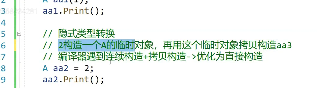 先由2构造一个临时对象,再去拷贝构造他,因为隐式类型转换,类型转换产生临时变量