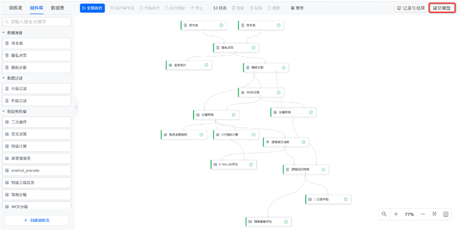 另外,平台也为方便大家,把内部沉淀的常用场景做了一些模板,大家可以根据需求进行使用,以快速完成整个模型搭建。