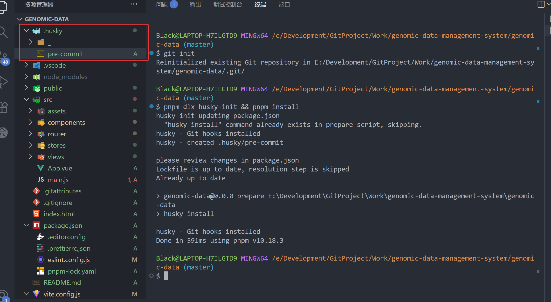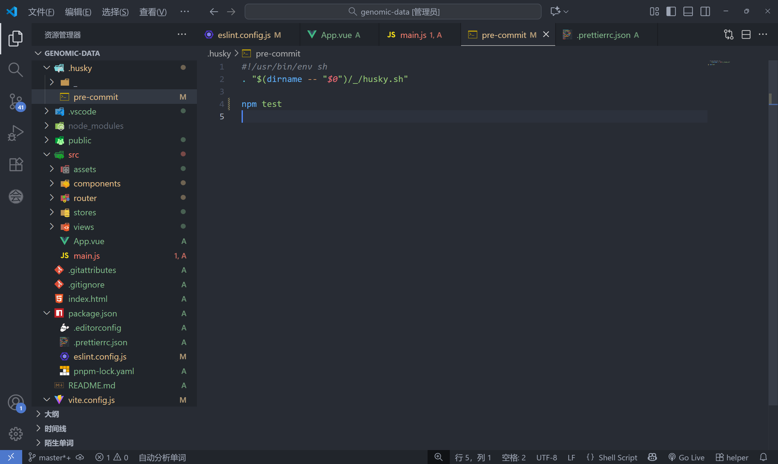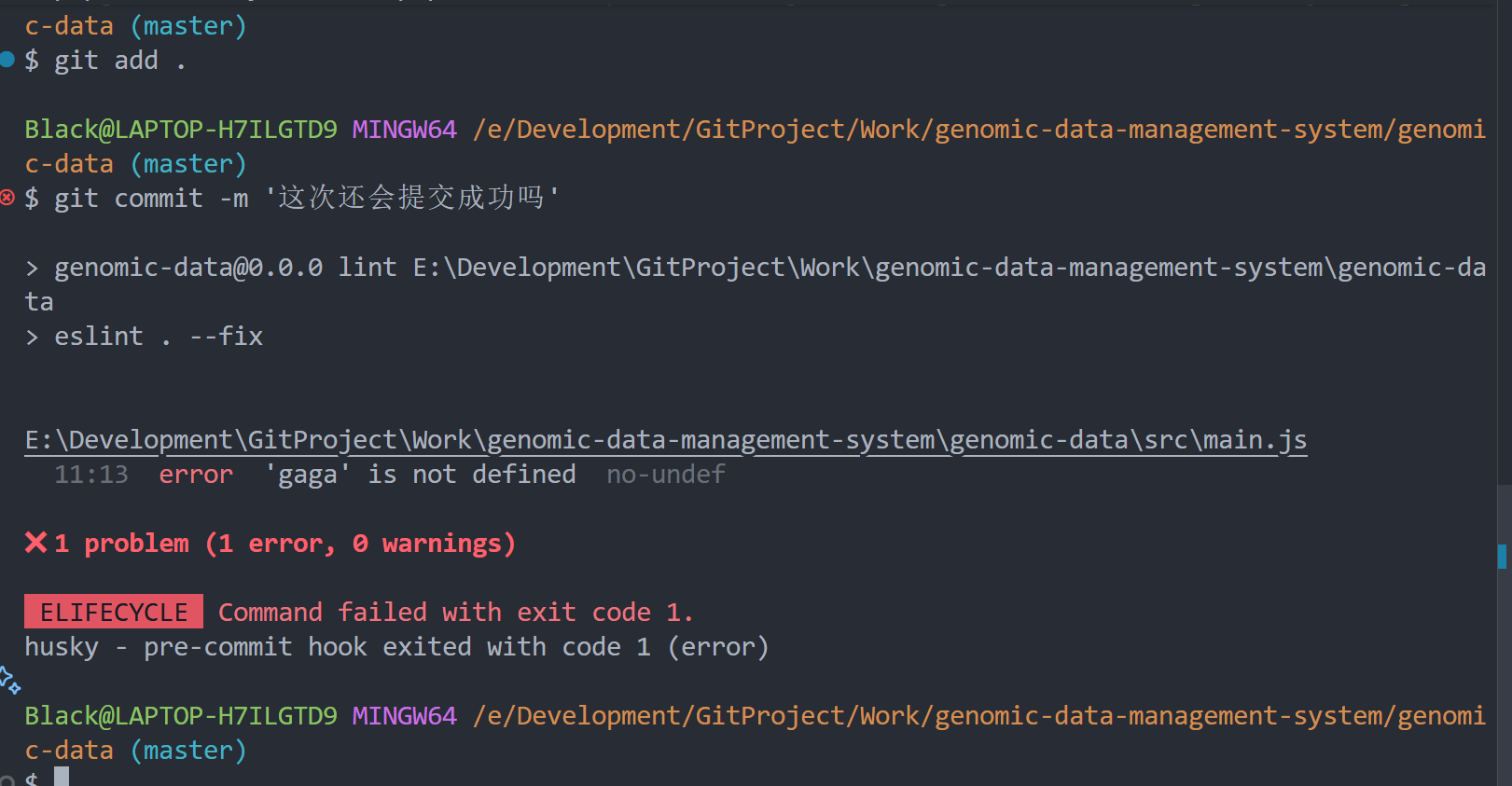 从上面的图片中可以看出,提交的代码明明有问题但是还是完成了代码的git,此时需要使用husky。