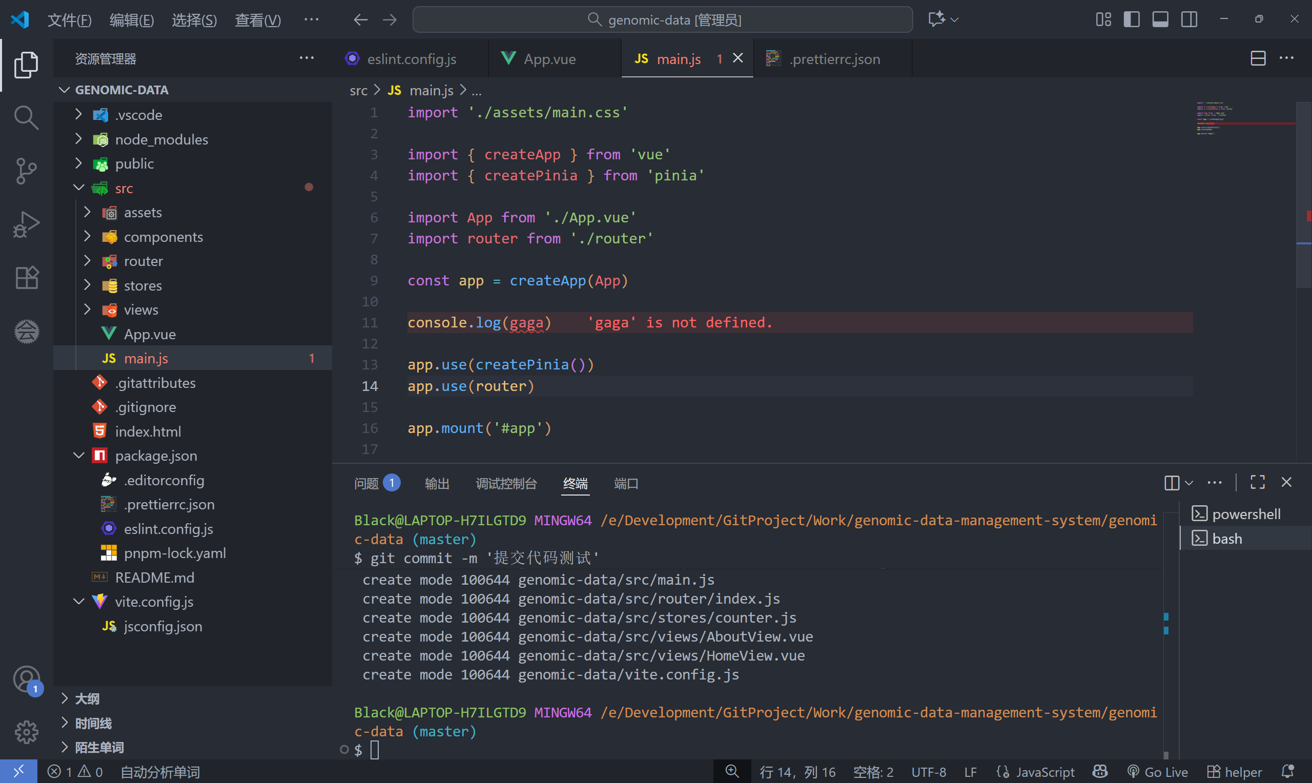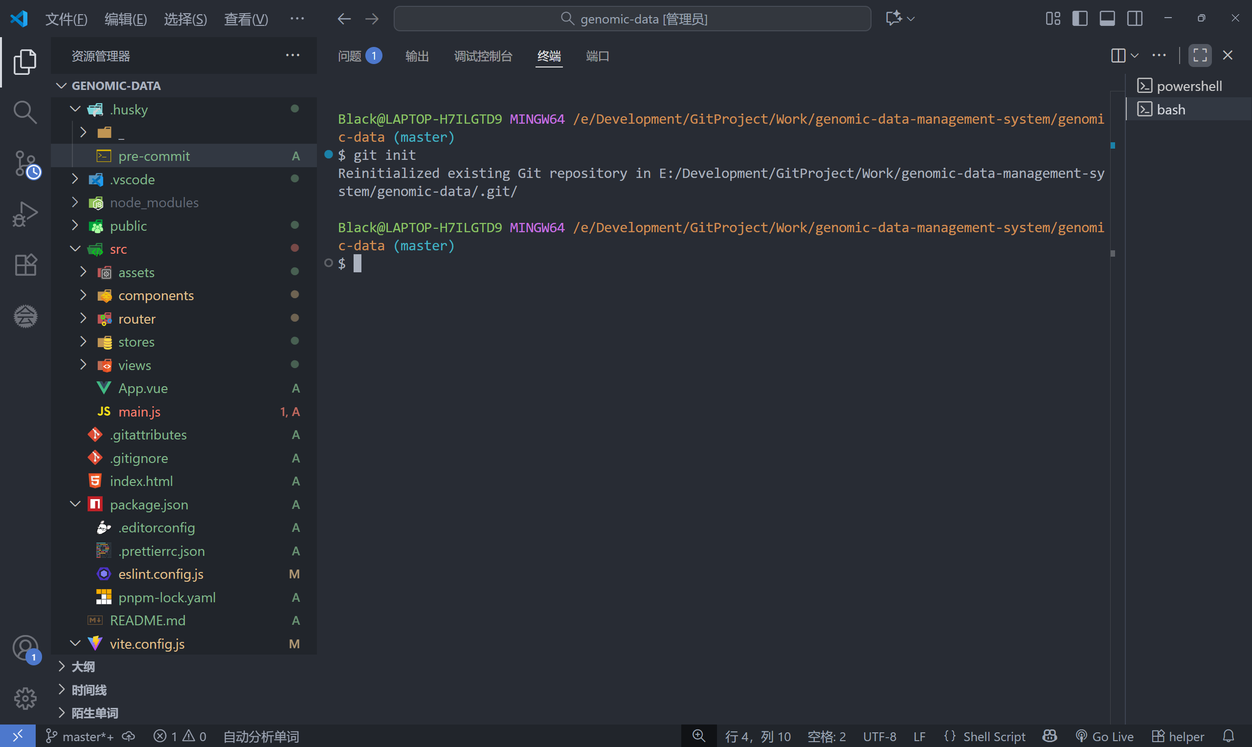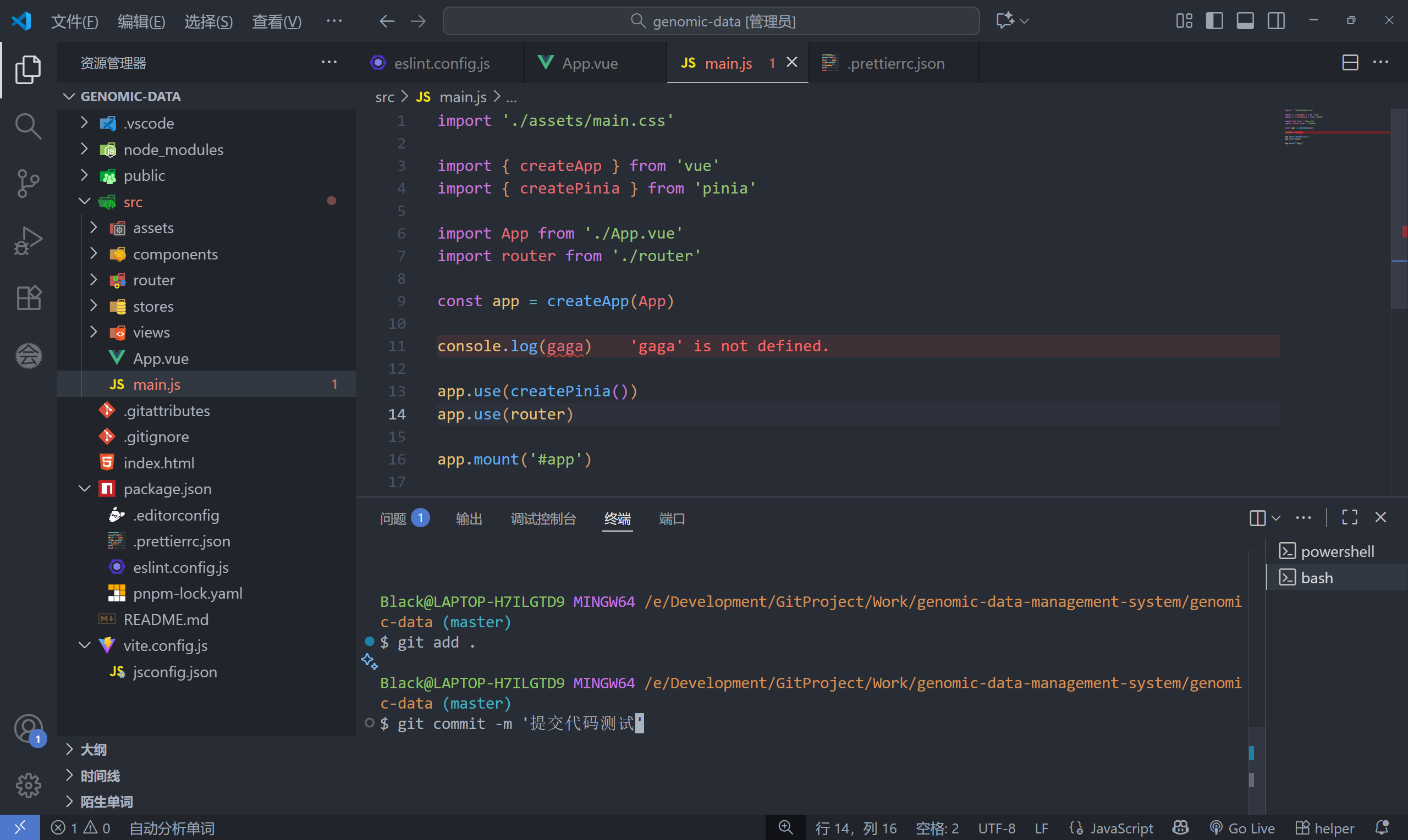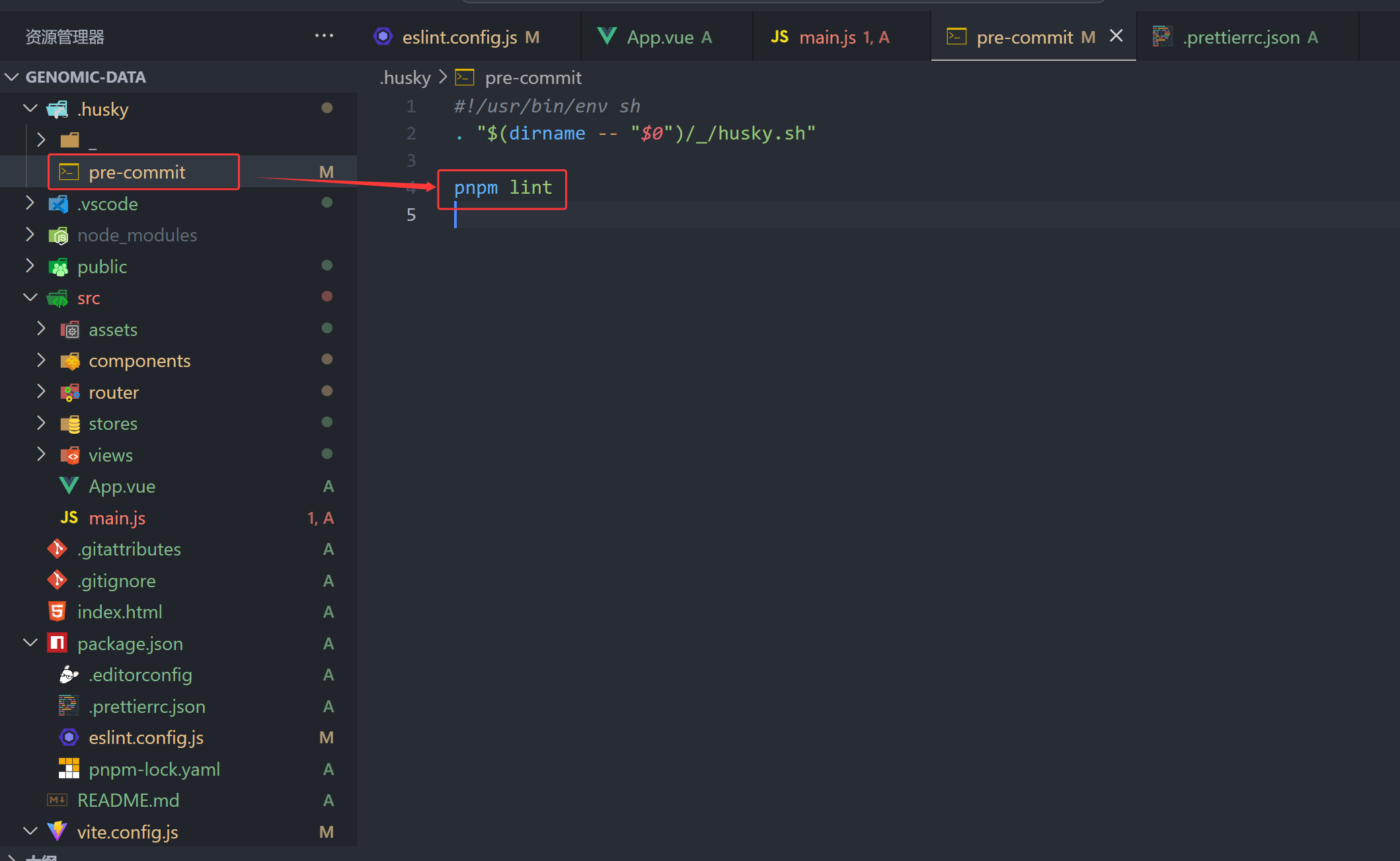 从上面的图片中可以看出,提交的代码明明有问题但是还是完成了代码的git,此时需要使用husky。
