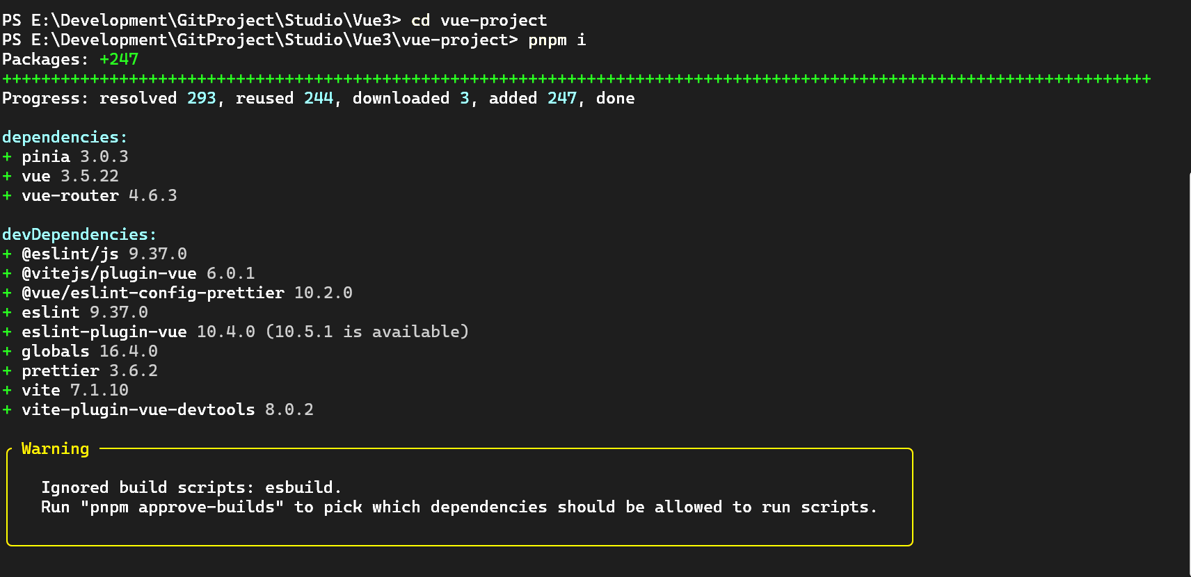 进入创建好的项目路径,使用pnpm i安装项目依赖