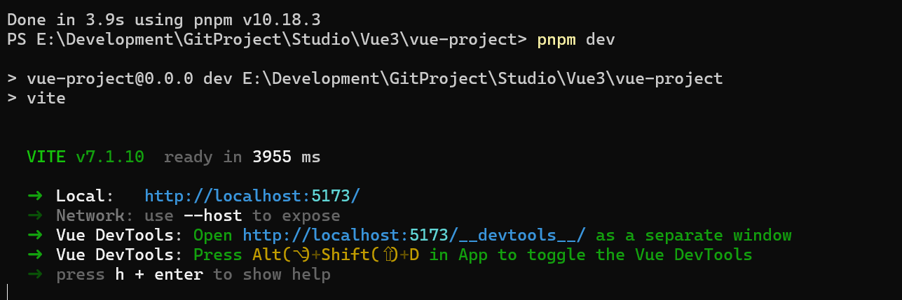 安装好依赖后使用pnpm dev查看项目是否创建成功