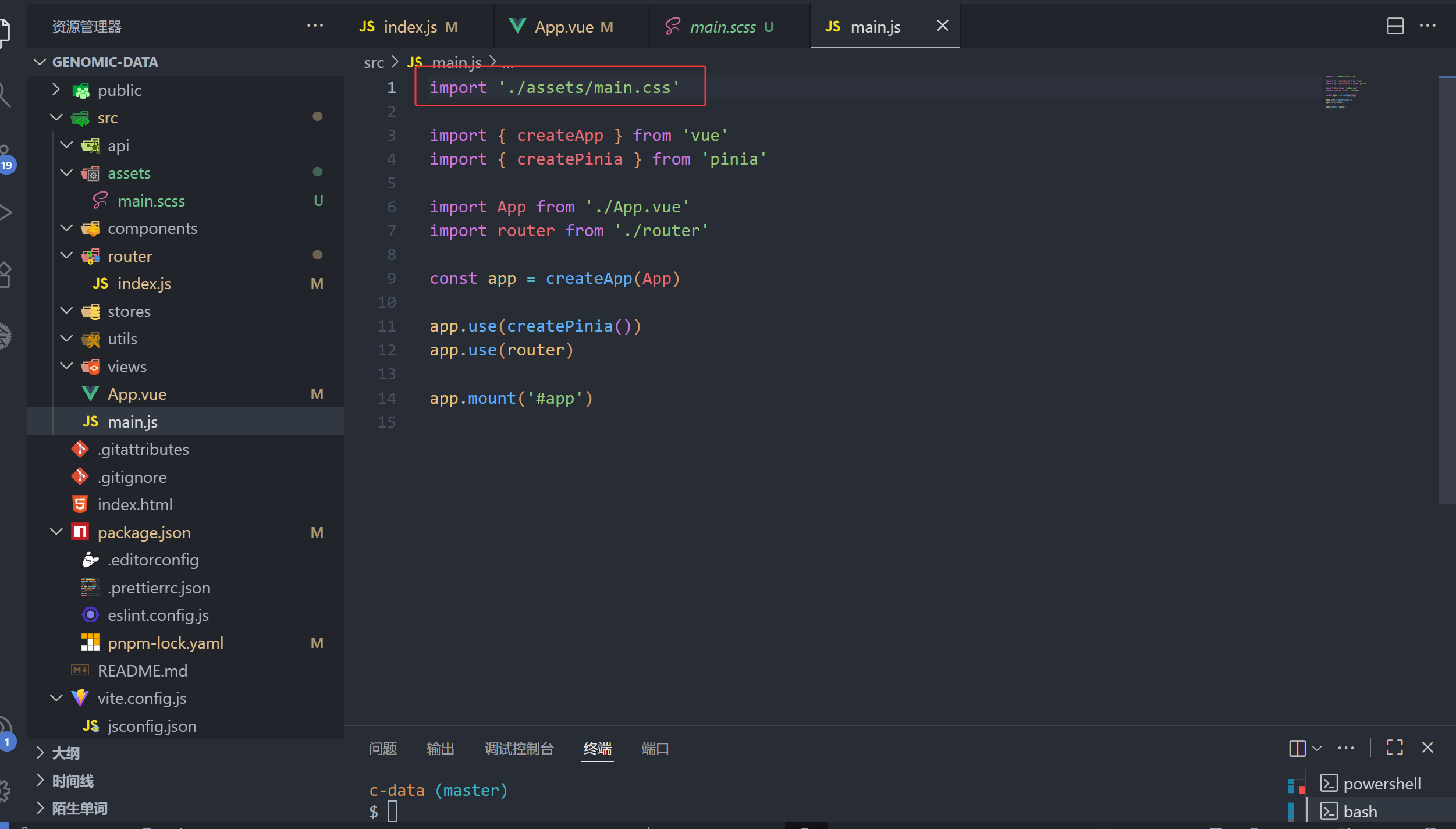 import { createApp } from 'vue'import pinia from './stores'import App from './App.vue'