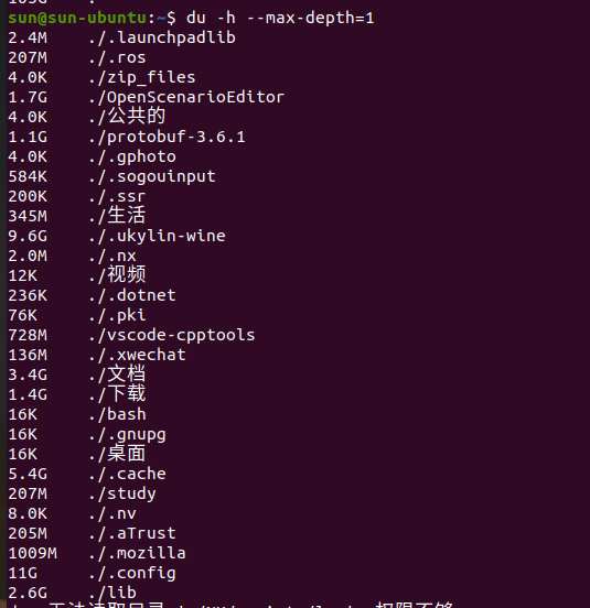 2. 各个文件夹占用资源情况 du -h --max-depth=1