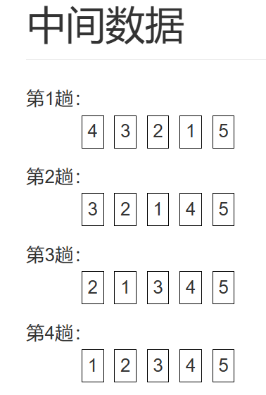 它重复地走访过要排序的数列,一次比较两个元素,如果他们的顺序错误,就把他们交换过来,重复地执行直到没有再交换的需要,也就是说该数列已经排序完成。