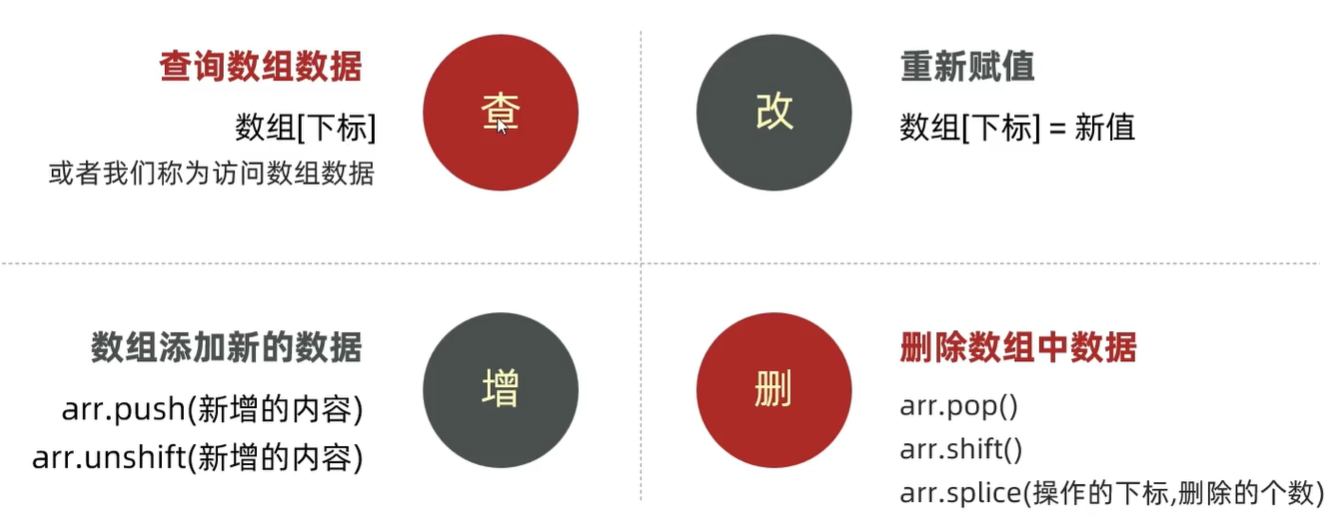 数组的本质就是数据集合,操作数组无非就是 增 删 改 查 语法: